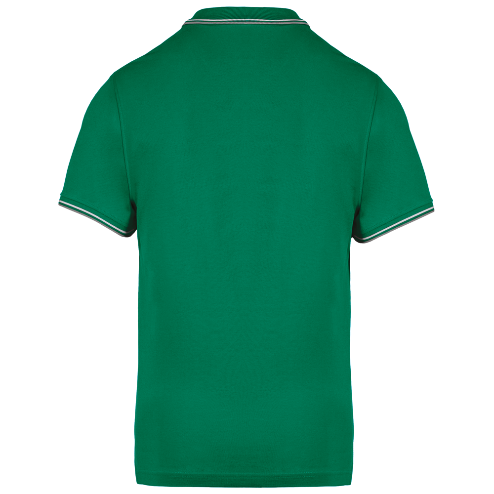 100% cotone piqué. 3 bottoni. Collo in contrasto, in costina e spacchetti laterali. Costine con profili in contrasto sul collo e polsini. Cuciture a doppio ago.