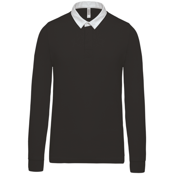100% cotone. Cotone pettinato jersey preristretto. Colletto in twill di cotone bianco a contrasto (tranne i colori Red e Dark Grey con colletto nero). Pattina con 3 bottoni. Polsini a costine 1x1. Nastrino di rinforzo a motivo spigato all'interno del colletto e spacchetti laterali.