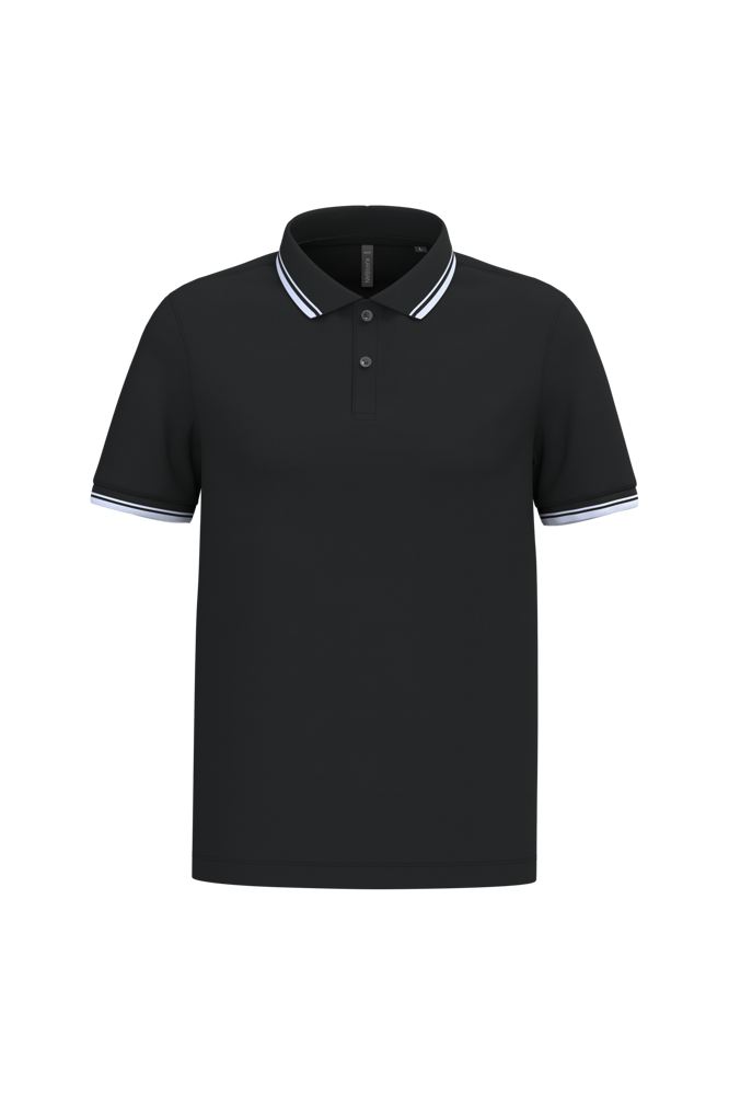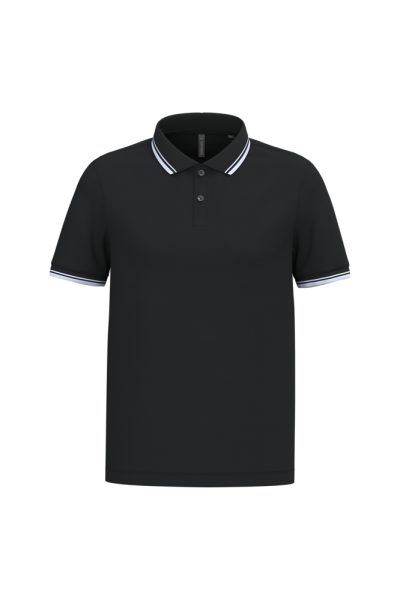 100% cotone. Per i colori screziati: 92% cotone / 8% viscosa. Cotone pettinato. Piqué. Taglio dritto. Pattina sul collo con 2 bottoni tono su tono. Nastrino di rinforzo nel tessuto principale sul collo. Spacchetti laterali con nastrino di rinforzo nel tessuto principale. Collo e fondo manica a costine con bordino rigato a contrasto. Doppia impuntura a fondo capo.