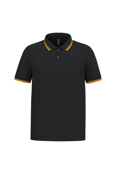 100% cotone. Per i colori screziati: 92% cotone / 8% viscosa. Cotone pettinato. Piqué. Taglio dritto. Pattina sul collo con 2 bottoni tono su tono. Nastrino di rinforzo nel tessuto principale sul collo. Spacchetti laterali con nastrino di rinforzo nel tessuto principale. Collo e fondo manica a costine con bordino rigato a contrasto. Doppia impuntura a fondo capo.