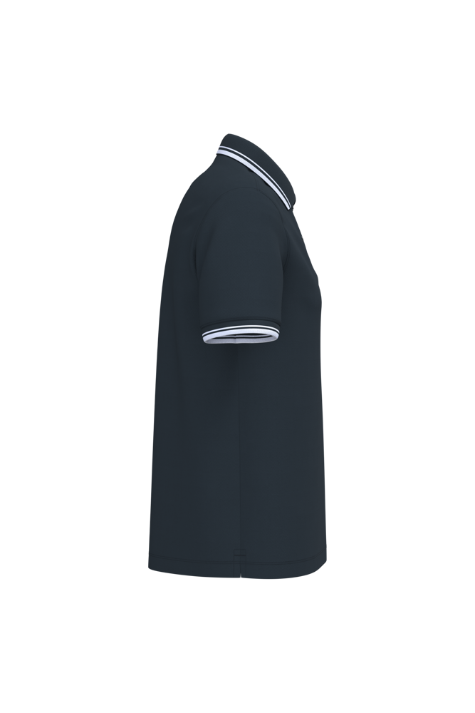100% cotone. Per i colori screziati: 92% cotone / 8% viscosa. Cotone pettinato. Piqué. Taglio dritto. Pattina sul collo con 2 bottoni tono su tono. Nastrino di rinforzo nel tessuto principale sul collo. Spacchetti laterali con nastrino di rinforzo nel tessuto principale. Collo e fondo manica a costine con bordino rigato a contrasto. Doppia impuntura a fondo capo.