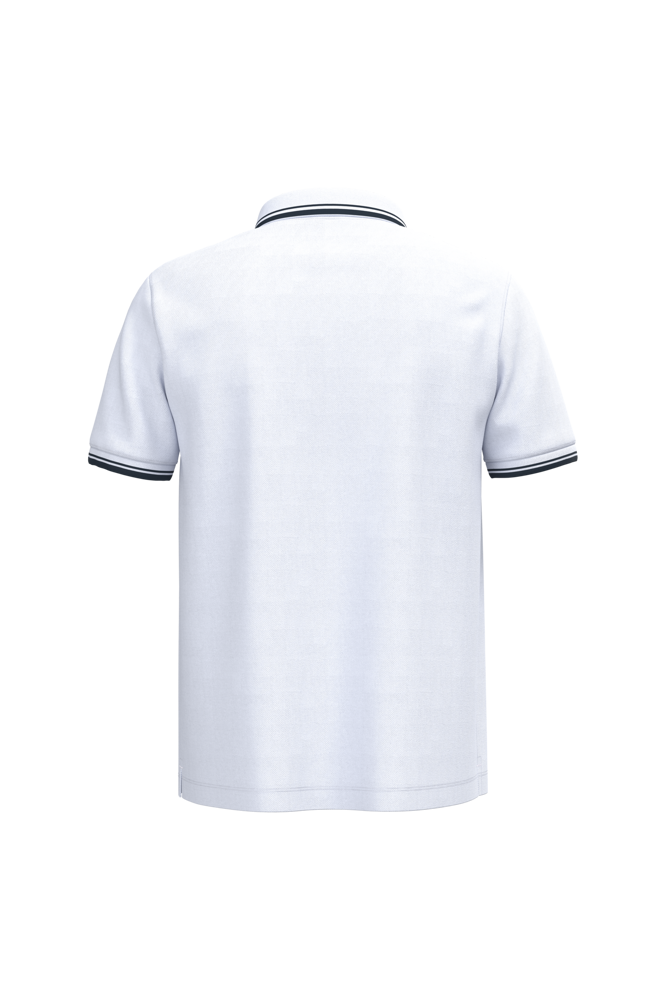 100% cotone. Per i colori screziati: 92% cotone / 8% viscosa. Cotone pettinato. Piqué. Taglio dritto. Pattina sul collo con 2 bottoni tono su tono. Nastrino di rinforzo nel tessuto principale sul collo. Spacchetti laterali con nastrino di rinforzo nel tessuto principale. Collo e fondo manica a costine con bordino rigato a contrasto. Doppia impuntura a fondo capo.