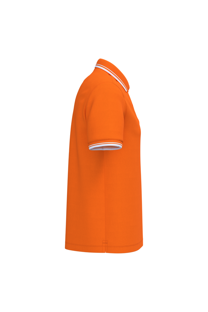 100% cotone. Per i colori screziati: 92% cotone / 8% viscosa. Cotone pettinato. Piqué. Taglio dritto. Pattina sul collo con 2 bottoni tono su tono. Nastrino di rinforzo nel tessuto principale sul collo. Spacchetti laterali con nastrino di rinforzo nel tessuto principale. Collo e fondo manica a costine con bordino rigato a contrasto. Doppia impuntura a fondo capo.