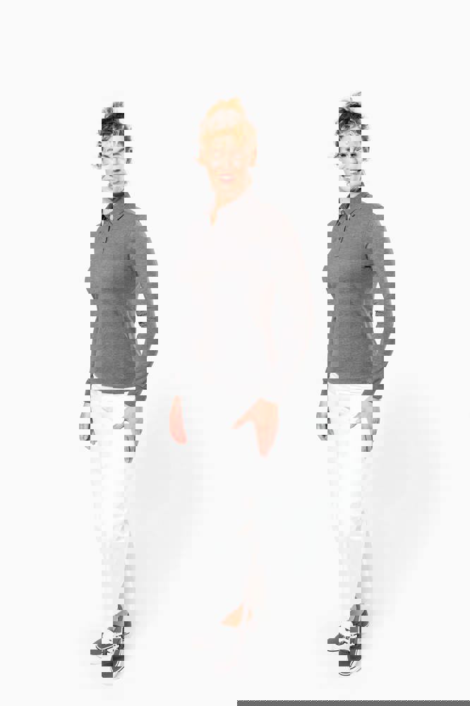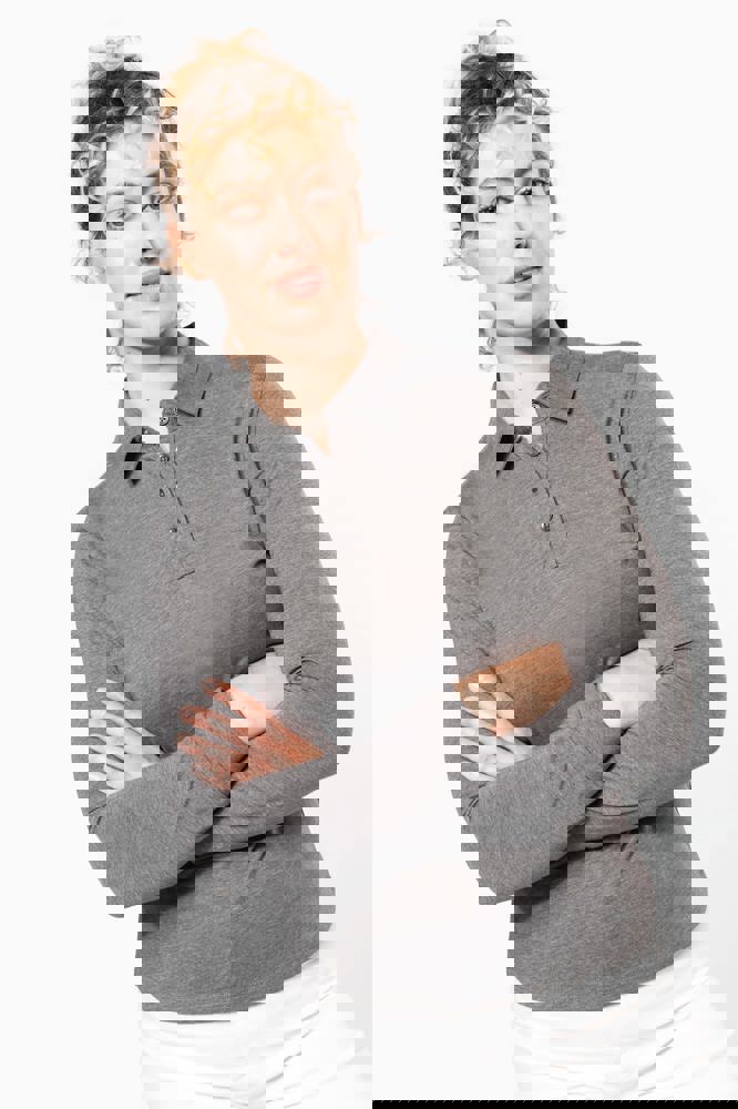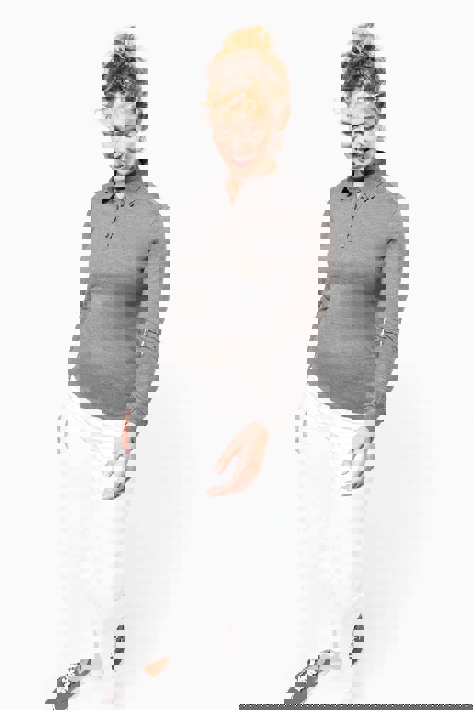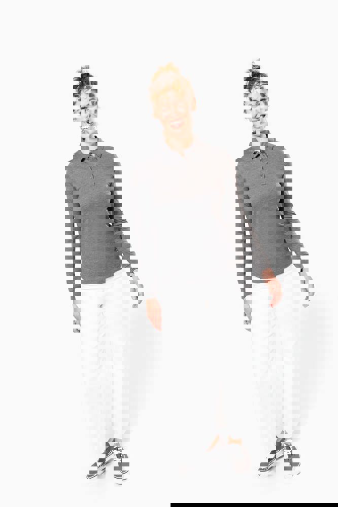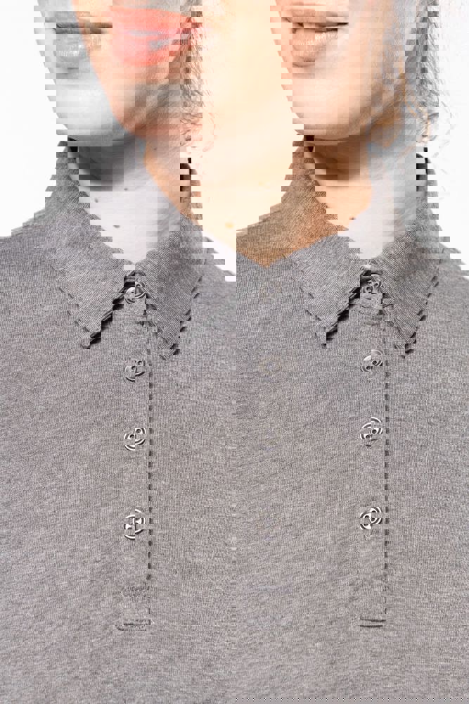 100% cotone (Grey Heather: 65% poliestere / 35% cotone - Oxford Grey : 90% cotone / 10% viscosa). Maglia jersey in cotone pettinato. Collo a camicia. Pattina con 4 bottoni in metallo. Inserto sulla spalla. Polsini a costine. Doppia impuntura a fondo capo.