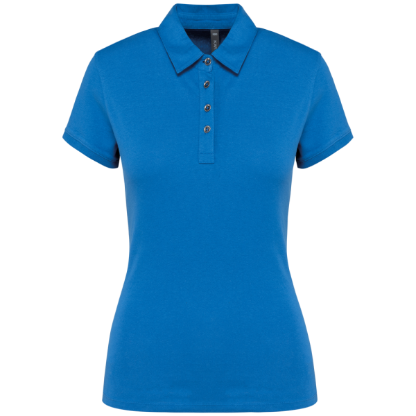 100% cotone pettinato ( French Navy: 80% cotone / 20% poliestere - Grey Heather: 65% poliestere / 35% cotone - Oxford Grey : 90% cotone / 10% viscosa). Tessuto in maglia jersey. Collo a camicia. Pattina con 4 bottoni in metallo. Inserto sulla spalla. Costine a fondo manica. Doppia impuntura a fondo capo.