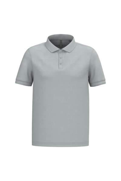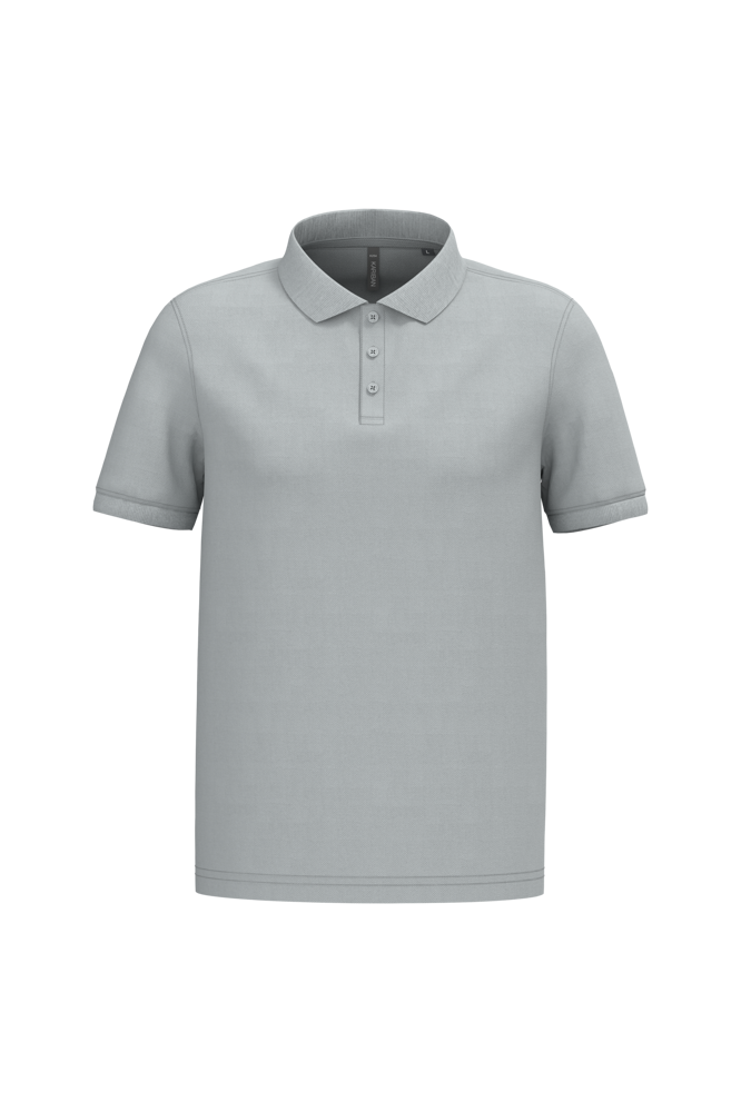 100% cotone (Oxford grey: 90% cotone / 10% viscosa. Ash Heather: 98% cotone / 2% viscosa). Cotone pettinato prelavato RingSpun. Punto piqué. Taglio dritto. Colletto e fondo manica a costine 1x1 tono su tono. Pattina con 3 bottoni tono su tono. Nastrino di rinforzo sul collo.