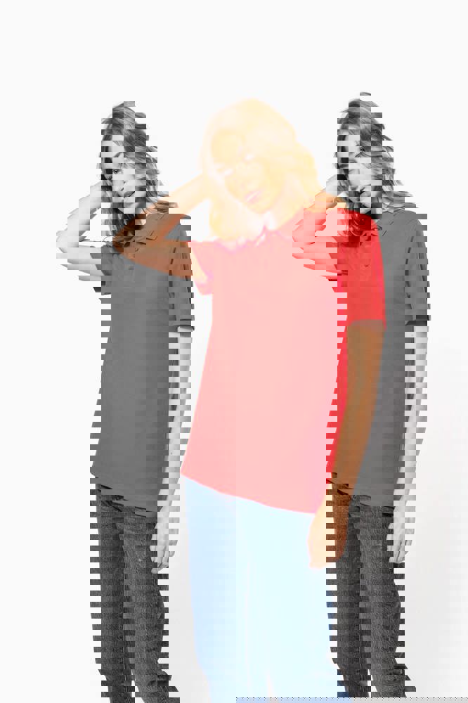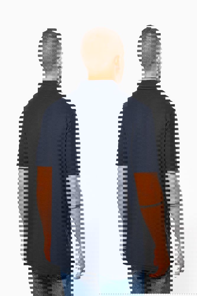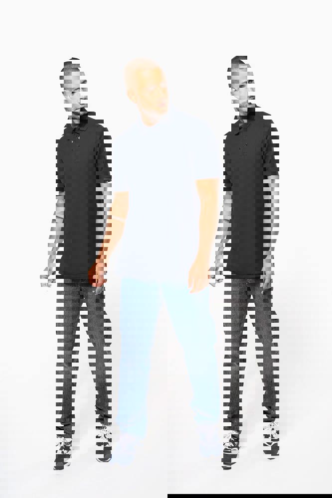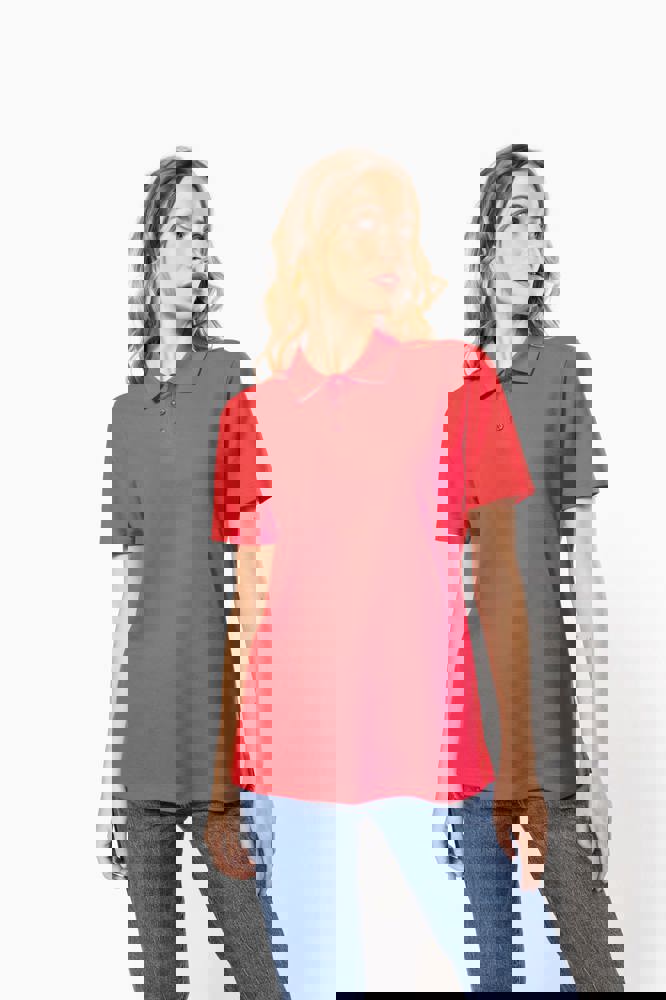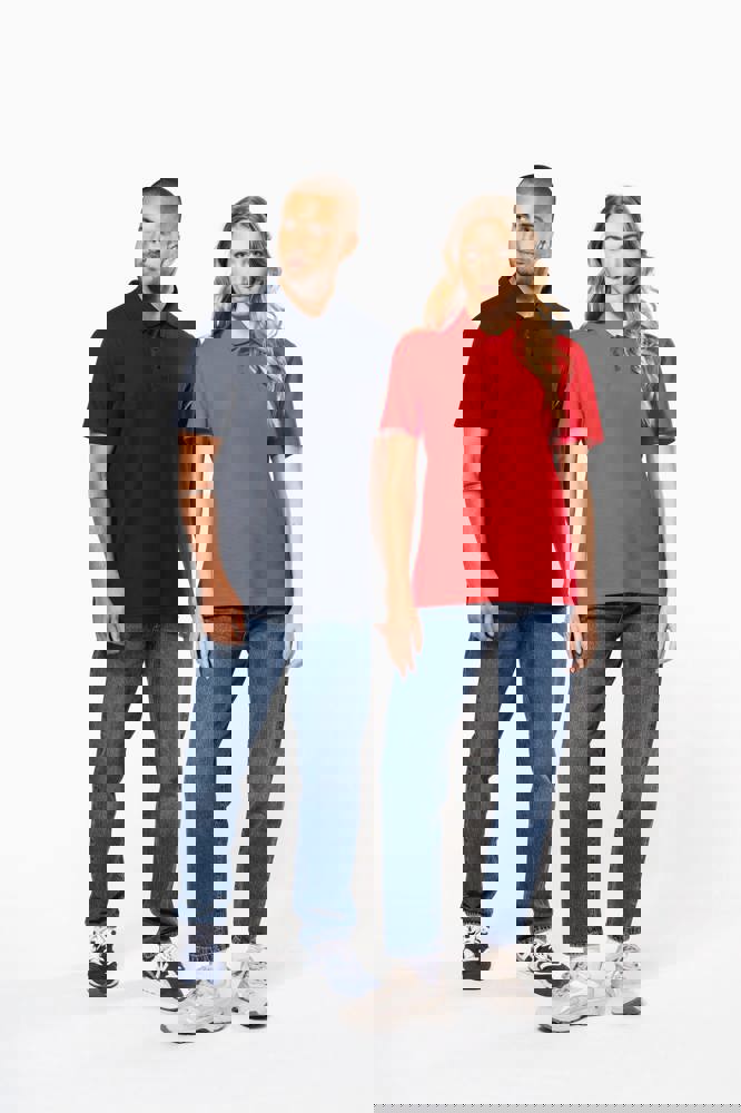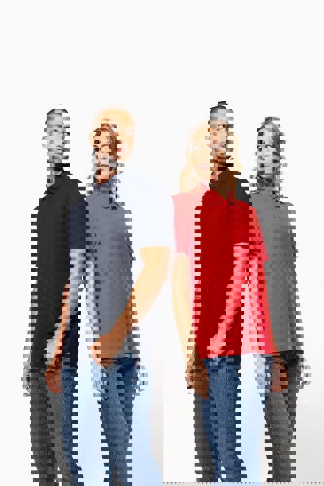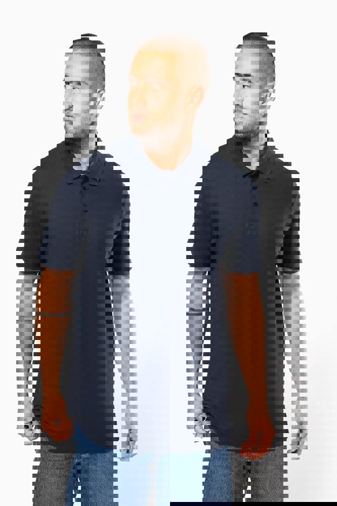 100% cotone. Colore grigio Oxford: 90% cotone / 10% viscosa. Cotone cardato. Maglia piqué. Taglio dritto. Cuciture laterali. Collo a costine 1x1. Pattina con 3 bottoni abbinati. Doppie impunture su fondo manica e orlo. Spacchi laterali. Collo con nastrino di rinforzo abbinato al materiale principale. Nessuna etichetta con il marchio, solo una piccola etichetta a strappo con l'indicazione della taglia per una facile decorazione.