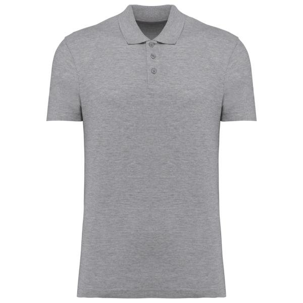 100% cotone. Colore grigio Oxford: 90% cotone / 10% viscosa. Cotone cardato. Maglia piqué. Taglio dritto. Cuciture laterali. Collo a costine 1x1. Pattina con 3 bottoni abbinati. Doppie impunture su fondo manica e orlo. Spacchi laterali. Collo con nastrino di rinforzo abbinato al materiale principale. Nessuna etichetta con il marchio, solo una piccola etichetta a strappo con l'indicazione della taglia per una facile decorazione.