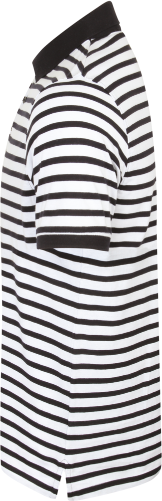 100% cotone jersey. Colletto e fondo manica a costine con elastan. Interno del colletto e pattina in jersey. Pattina con 3 bottoni color Navy. Spacchetti laterali a motivo spigato. Finitura a doppia impuntura a fondo capo. Senza etichetta, per semplificare la personalizzazione.