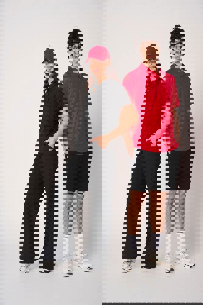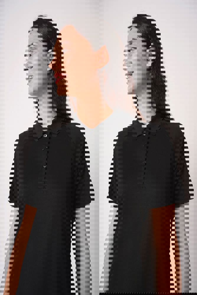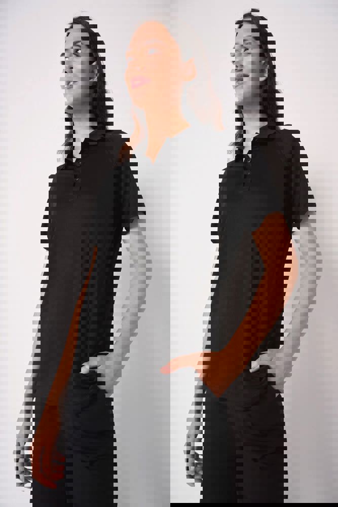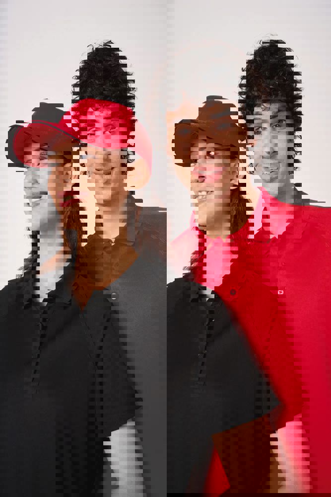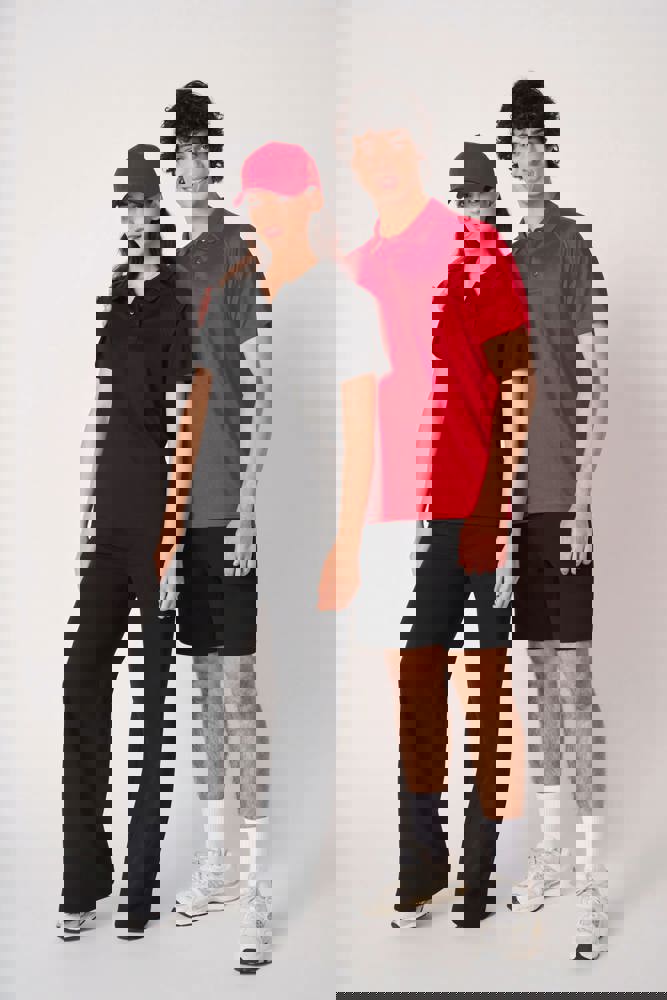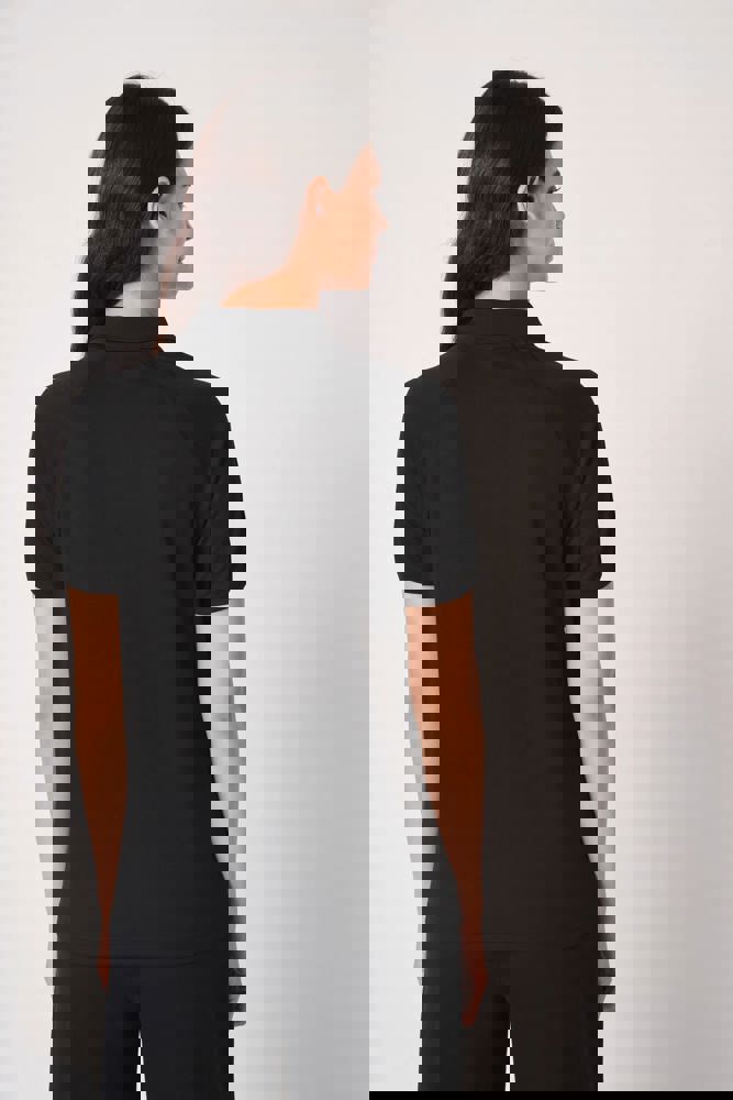 100% poliestere. Maglia piqué mesh. Tessuto leggero ad asciugatura rapida. Taglio dritto. Maniche raglan con cucitura di copertura. Colletto in finitura a costine 1x1. Pattina con 3 bottoni tono su tono. Nastro di rinforzo interno al collo tono su tono. Orli delle maniche e del fondo capo con finitura a doppio ago. Etichetta del marchio staccabile.