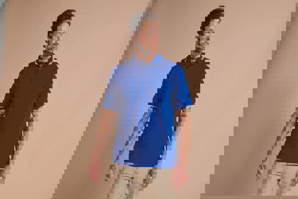 100% poliestere Coolplus® micro piqué. Pattina con 2 bottoni tono su tono. Colletto e fondo manica a costine con colore a contrasto. Spacchetti laterali.