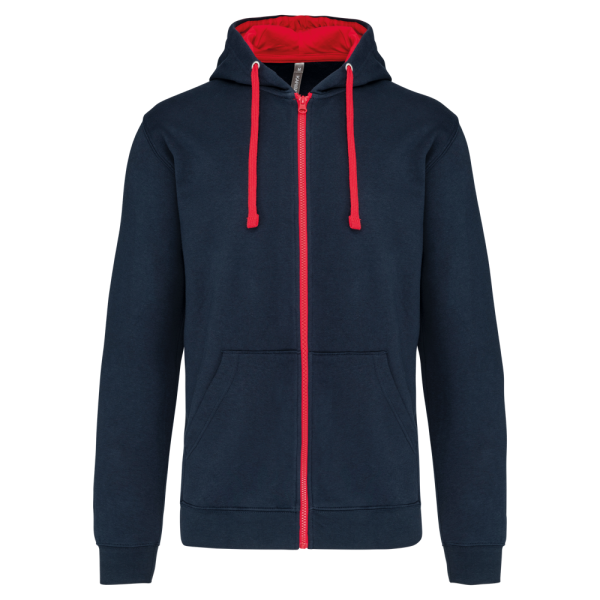 K466 - Felpa uomo con cappuccio a contrasto full zip