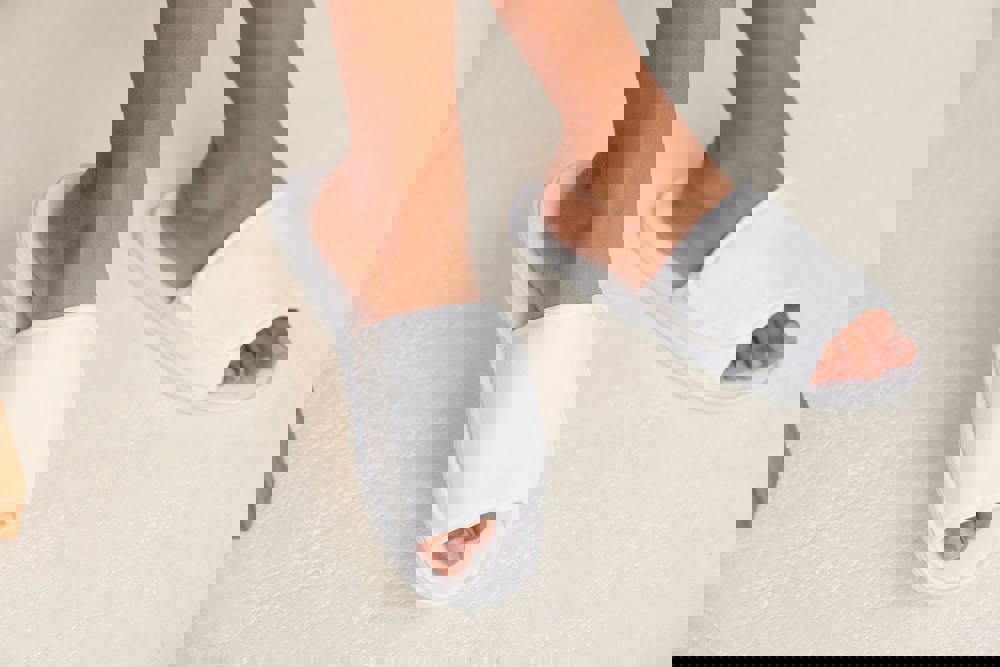 160g/m². 100% poliestere. Suola imbottita in fibre miste. Pantofole aperte, chiusura regolabile con fascia in velcro nella parte superiore. Adatto per stampa a sublimazione Bordo overlock.