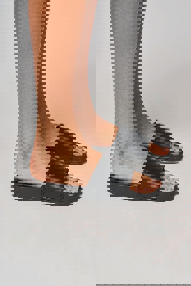 Tomaia del sandalo in PU (poliuretano) con parte inferiore in schiuma per un comfort maggiore. Suola in PVC (polivinilcloruro) con elementi in rilievo per un'aderenza ottimale. Soletta ergonomica che avvolge il piede per tenerlo fermo e assorbire meglio gli impatti.