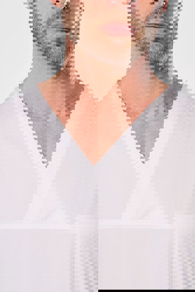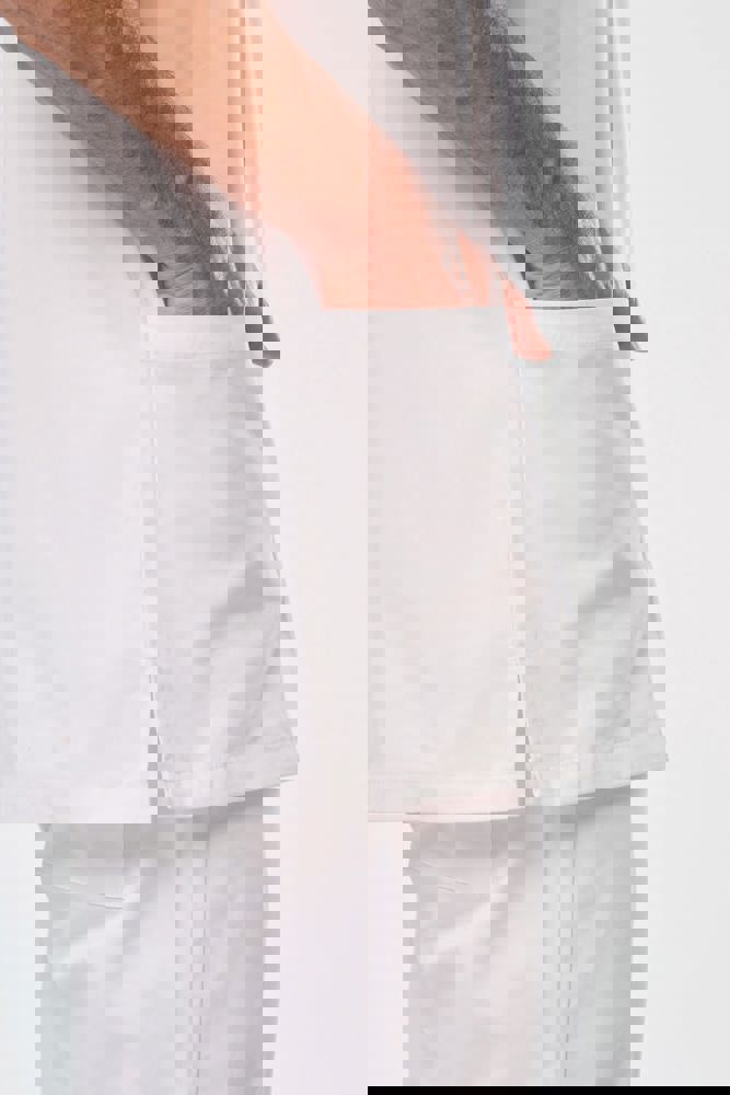 100% cotone. Tessuto twill. Lavaggio a 60°C. Taglio regolare. Scollo a V incrociato. Tasca sul petto applicata lato cuore. 2 ampie tasche applicate davanti. 2 spacchetti comfort laterali. Etichetta con il nome all'interno del capo. Etichetta con il nome del marchio staccabile.