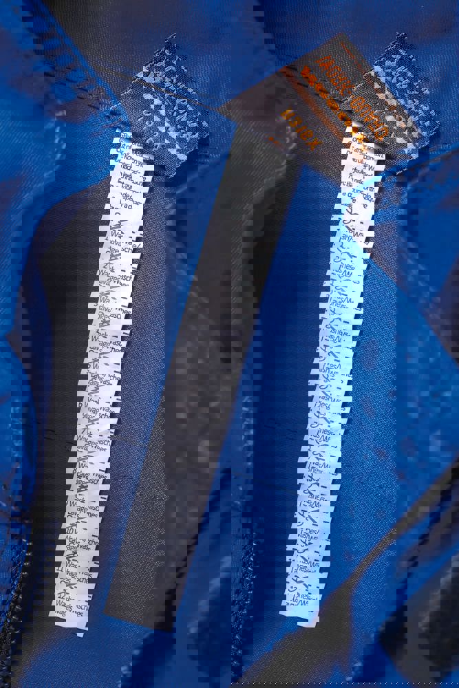 80% poliestere / 20% twill di cotone. Collo alto e chiusura con zip sul davanti completa di patta esterna chiusa con velcro. Vita elasticizzata. Polsini elasticizzati. Tasche cargo multiuso di diverse dimensioni con linguette riflettenti applicate sulla patta in velcro. Cuciture rinforzate sui punti soggetti a maggiori sollecitazioni. Anello a D. Asola per appenderla cucita all'interno del collo. Proprietà di resistenza all'acqua inalterate fino a 12 lavaggi (etichetta di controllo da tagliare all'interno del capo).
