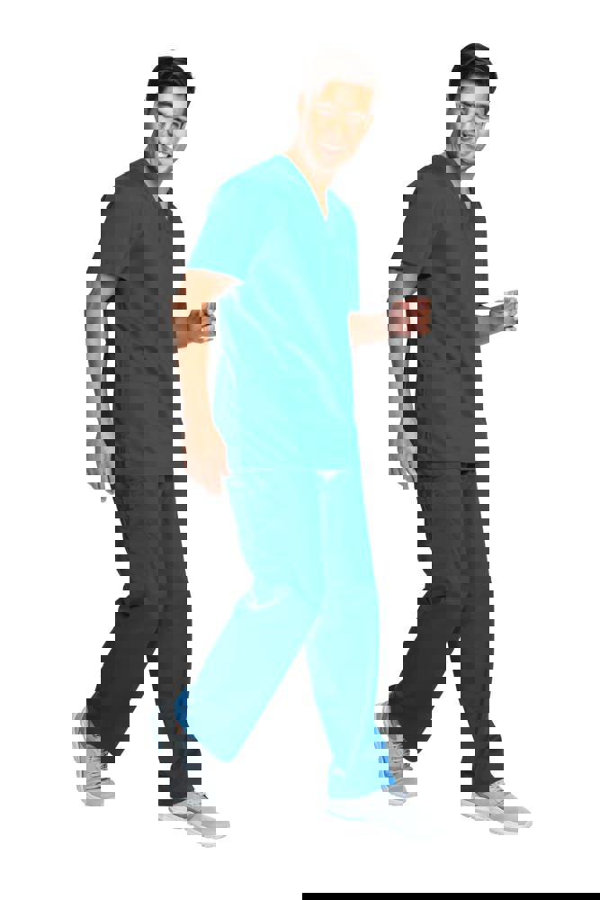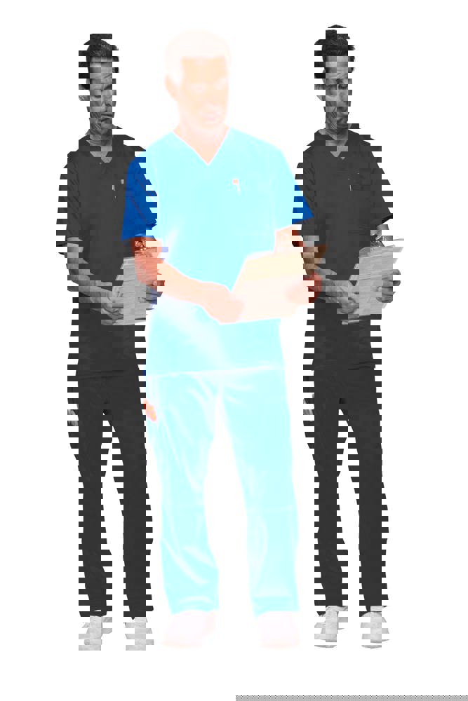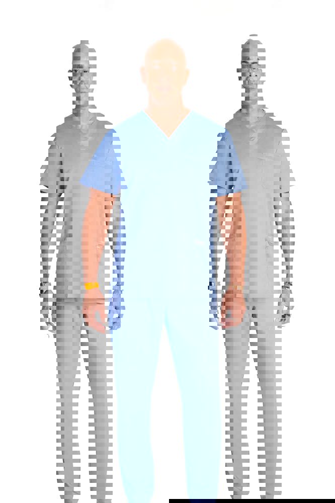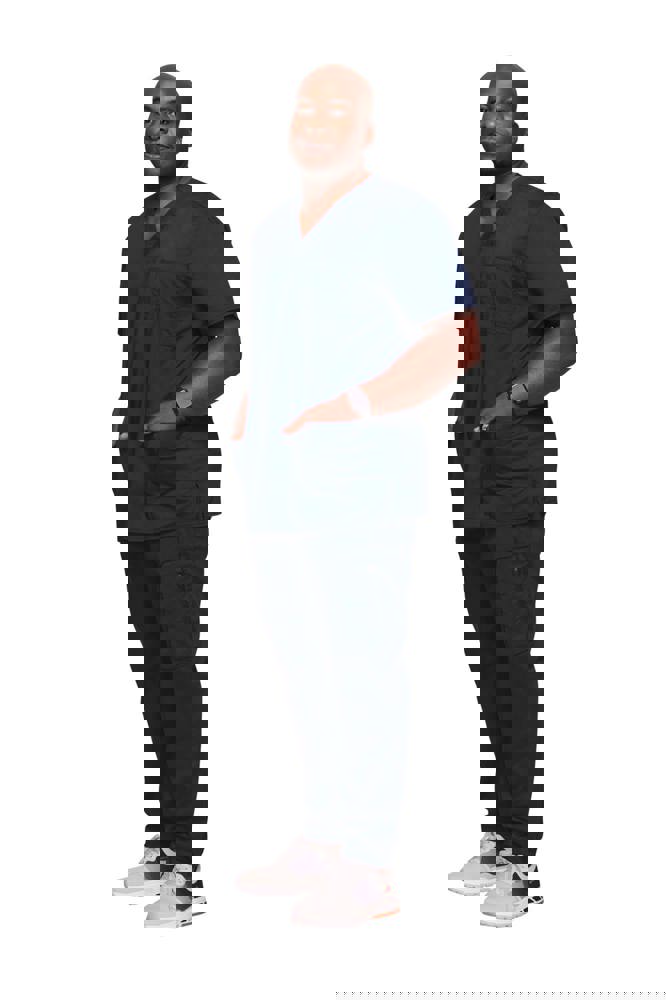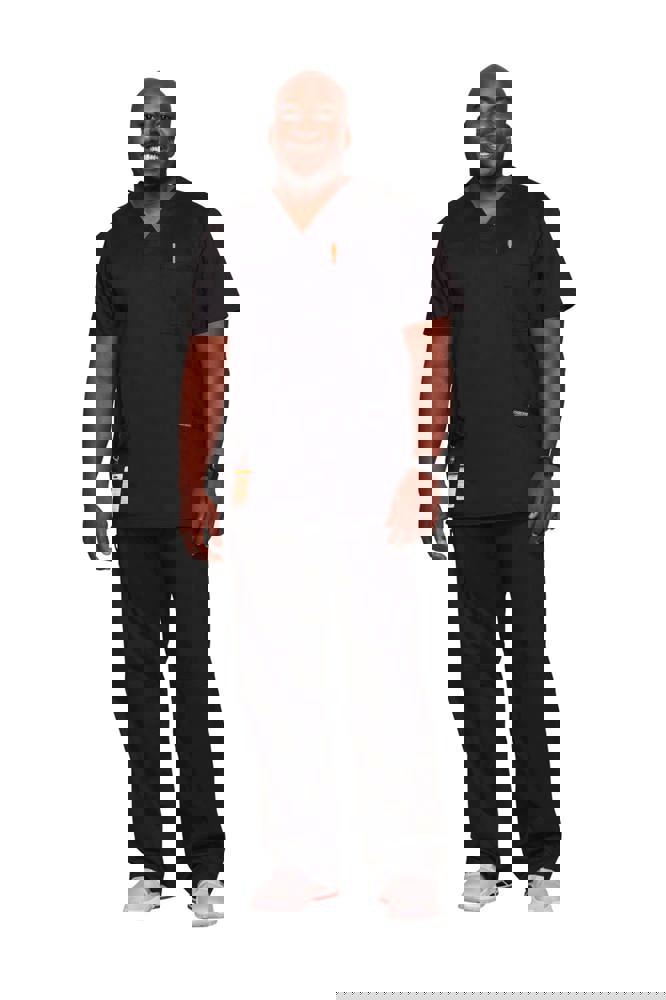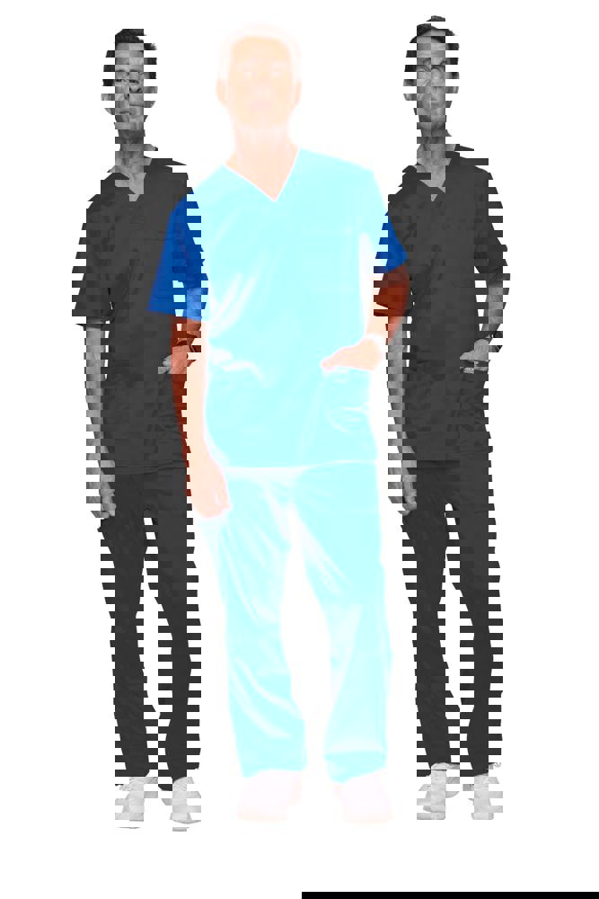 78% poliestere / 20% viscosa / 2% elastan. Tessuto pettinato. Taglio maschile. Tasca sul petto con portapenna. Due tasche applicate. Etichette con logo e passante elasticizzato. Giogo posteriore. Aperture di aerazione laterali.