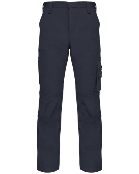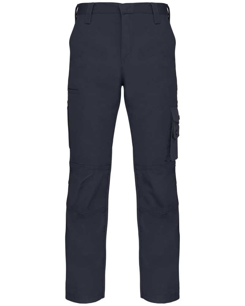 65% Poliestere / 35% Cotone. Zip e bottoni. Cucitura inguine rinforzata con tripla impuntura. 3 tasche anteriori, 3 tasche posteriori e 1 tasca laterale. Massimo confort alle ginocchia per facilitare il movimento.