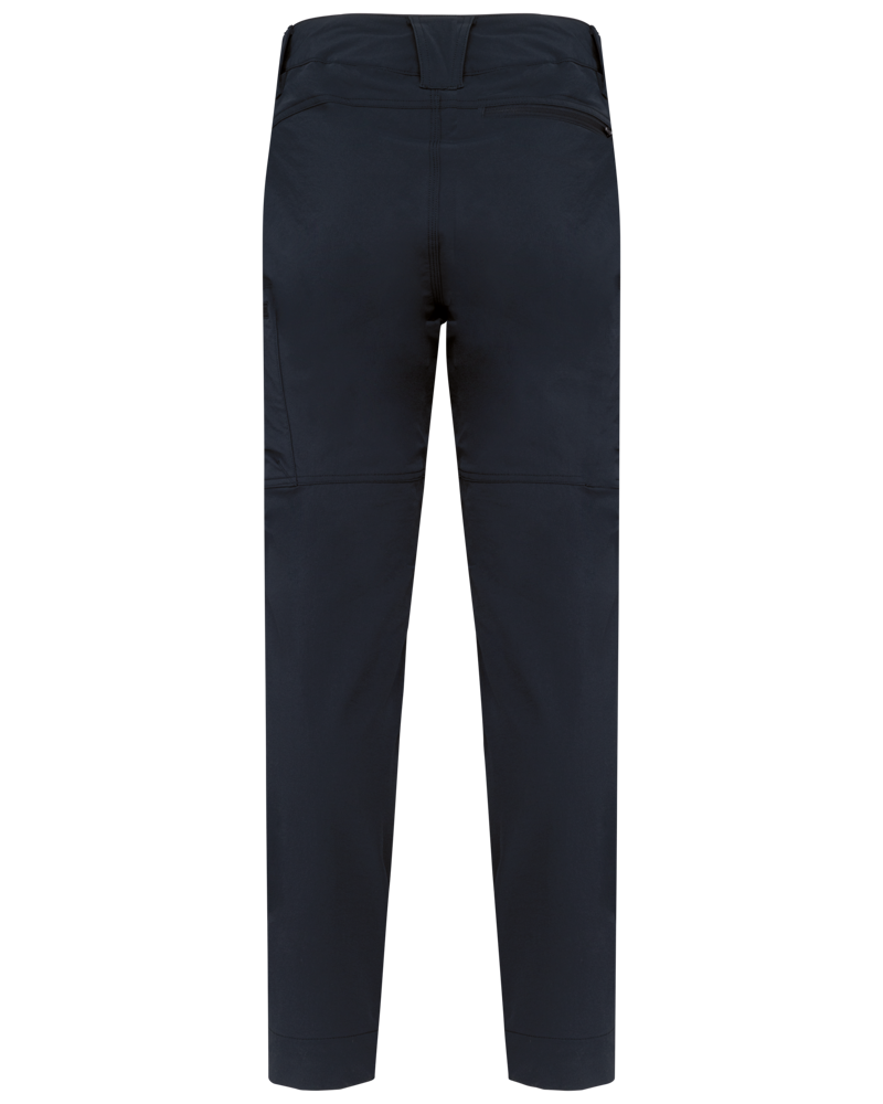 70% poliammide riciclata / 22% cotone / 8% elastan. Tessuto dobby elasticizzato. Lavare a 40°C. 2 tasche anteriori. 1 tasca per biglietti sul lato destro quando è indossata. 1 tasca applicata con zip sul lato sinistro quando è indossata. 1 tasca anteriore applicata + 1 tasca posteriore con zip sul lato destro quando è indossata. Carrè anteriore e posteriore. Vita con passanti per cintura, di cui 1 largo e rinforzato al centro della schiena. Vita regolabile all'interno della schiena con elastico. Chiusura con zip e bottone in plastica nascosto dal tessuto principale. Inserti al ginocchio tono su tono. Triple cuciture su cavallo, fianchi e cavallo, davanti e dietro. Orlo regolabile di 5 cm. Etichetta del marchio staccabile.