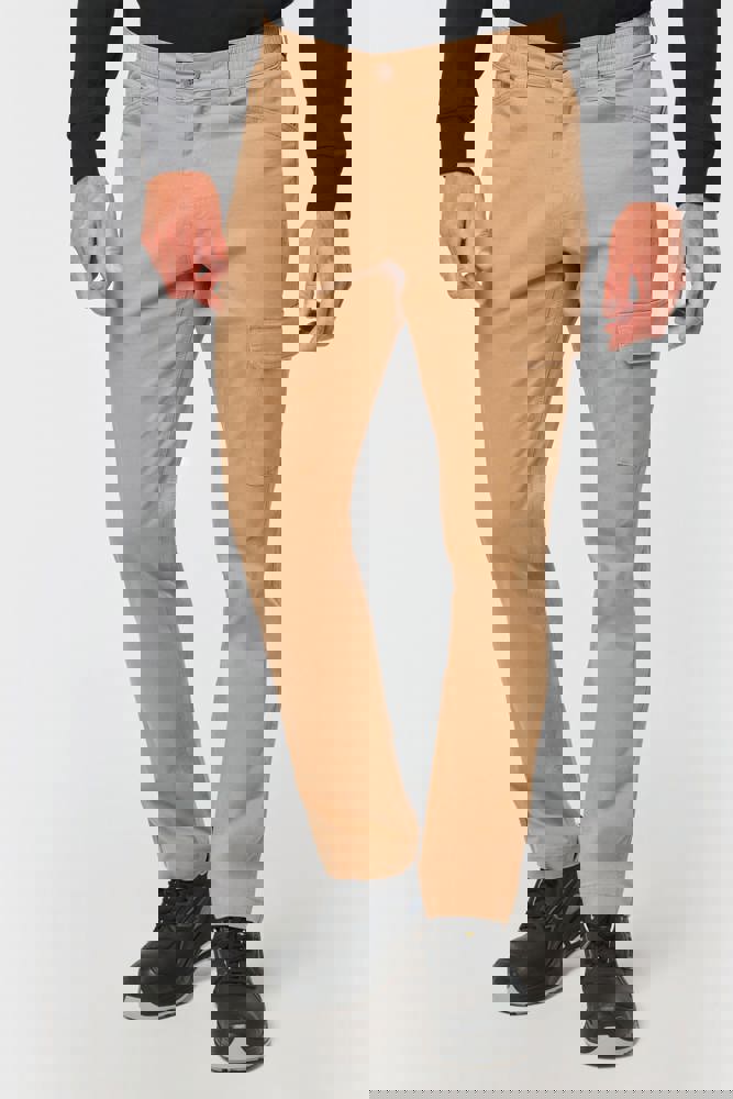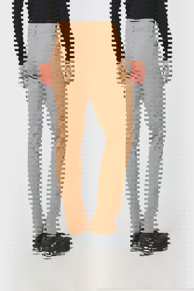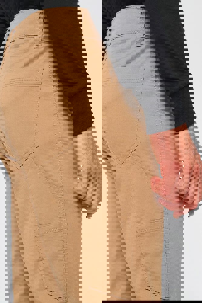 98% cotone / 2% elastan. Tessuto twill. Lavare a 40°C. 2 tasche anteriori. 1 tasca per biglietti sul lato destro quando è indossata. 1 tasca applicata con patta e chiusura a velcro sul lato sinistro quando è indossata. 1 tasca doppia per gli attrezzi (detta tasca da falegname) sul retro a destra quando è indossata. 2 tasche posteriori applicate. Vita elastica sui lati con passanti per cintura, di cui 1 largo al centro della schiena. Chiusura con cerniera e bottone in plastica. Doppie cuciture sui fianchi, triple cuciture sul cavallo e sulle forcelle (davanti e dietro). Orlo inferiore della gamba. Etichetta del marchio staccabile.