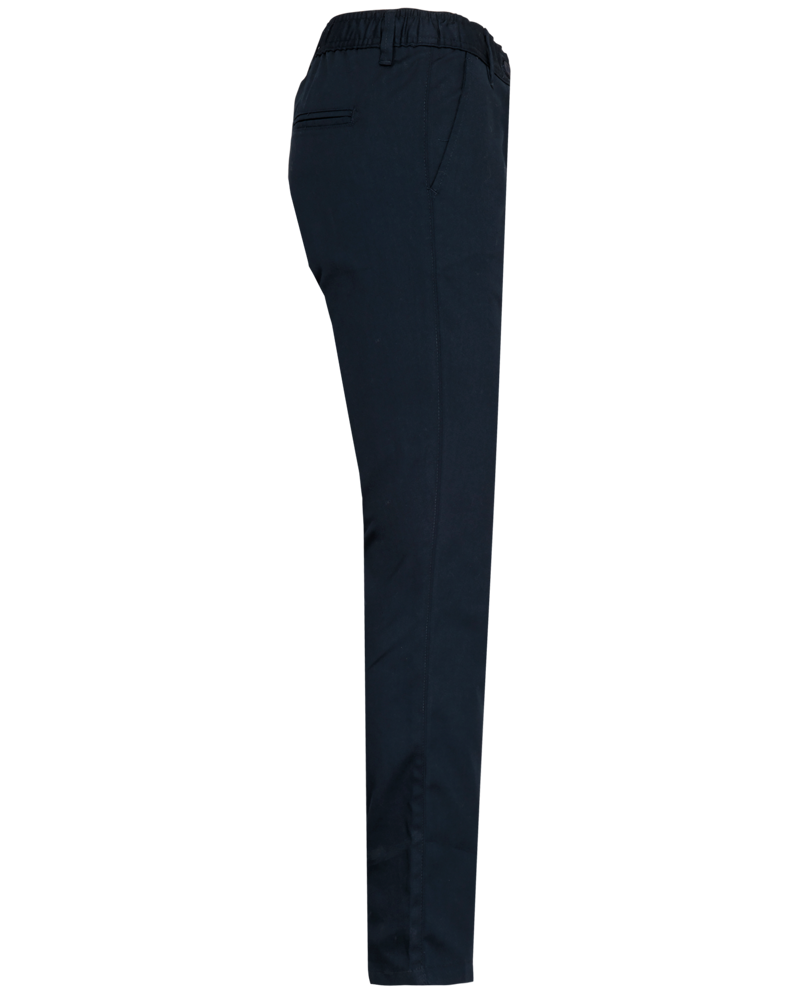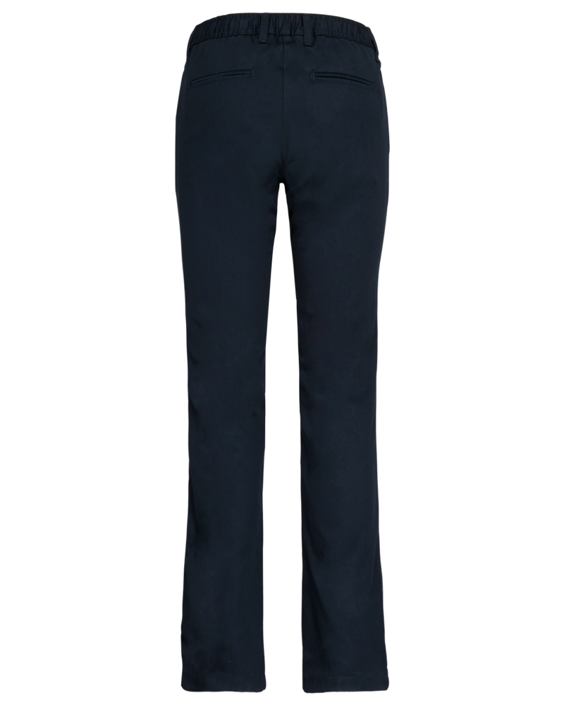65% poliestere / 35% cotone. Lavabili a 60 °C. 2 tasche laterali all'italiana. 2 tasche a filetto posteriori con cuciture rinforzate. Patta con zip e bottoni. Girovita elasticizzato per un maggior comfort e passanti. Asola per appendere il capo all'interno del girovita, nella parte posteriore. Ideale per un uso quotidiano.