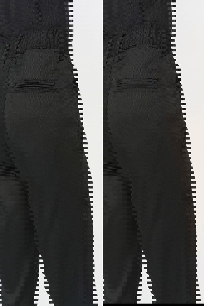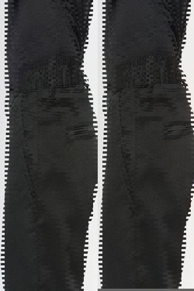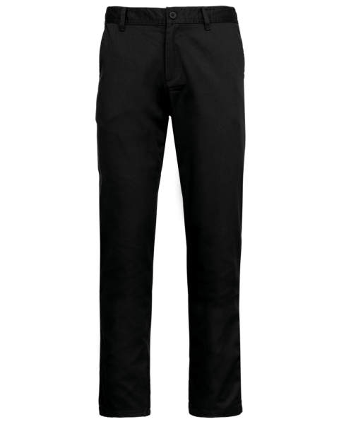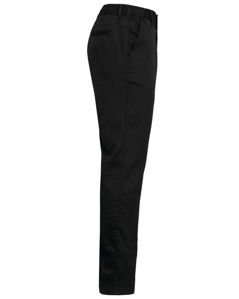 65% poliestere / 35% cotone. Lavabili a 60 °C. 2 tasche laterali all'italiana, di cui 1 taschino portamonete. 2 tasche a filetto posteriori con cuciture rinforzate. Patta con zip e bottoni. Girovita elasticizzato per un maggior comfort e passanti. Asola per appendere il capo all'interno del girovita, nella parte posteriore. Ideale per un uso quotidiano.