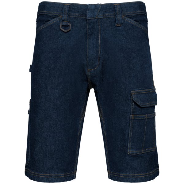 99% cotone / 1% elastan. Tela denim. Taglio dritto. Lavaggio a 60 °C. Chiusura con bottone nascosto e zip in metallo. Davanti: 2 tasche con apertura a sbieco. Lato sinistro: tasca con patta con cucitura rinforzata e chiusura a strappo. Sovratasca a 3 scomparti, di cui 1 con passante per penna. Lato destro: passante per martello, tasca per metro e sovratasca con chiusura in velcro. Dietro: 2 tasche applicate con cuciture rinforzate di cui una con patta a strappo. Girovita arrotondato dietro con ampio bordo interno elasticizzato e antiscivolo per una vestibilità ottimale. Asola interna arancione dietro al centro. Passanti con cuciture rinforzate e 1 anello in plastica davanti. Soffietto rinforzato sul cavallo per una maggiore resistenza e massima libertà di movimento. Cuciture a tripla impuntura su fianchi, interno gamba e centro dietro. Finitura a doppia impuntura a fondo gamba. Etichetta con il nome del marchio rimovibile.