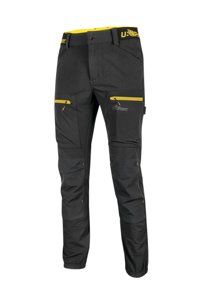 86% nylon, 14% spandex. Pantaloni da lavoro estivi in tessuto stretch U-4 con inserti elasticizzati in vita e a fondo gamba. Taglio da jogging ultra comodo. Il tessuto elasticizzato di questi pantaloni da lavoro si allunga contemporaneamente in quattro direzioni, garantendo massima libertà di movimento. Pantaloni da lavoro idrorepellenti, ad asciugatura rapida e ultra traspiranti. Chiusura centrale con zip e bottone in gomma antigraffio. Battitacco e pannello posteriore accentuato per una maggiore protezione della zona lombare. I pantaloni uomo da lavoro Harmony sono dotati di numerose tasche che garantiscono funzionalità e praticità : due ampie tasche sul davanti, due tasche frontali multifunzione con zip, due tasche posteriori, di cui una con zip e una con velcro, tasca per metro, porta martello e tasche per le ginocchiere. La presenza della striscia riflettente sul passante tubolare posteriore garantisce una maggiore visibilità .