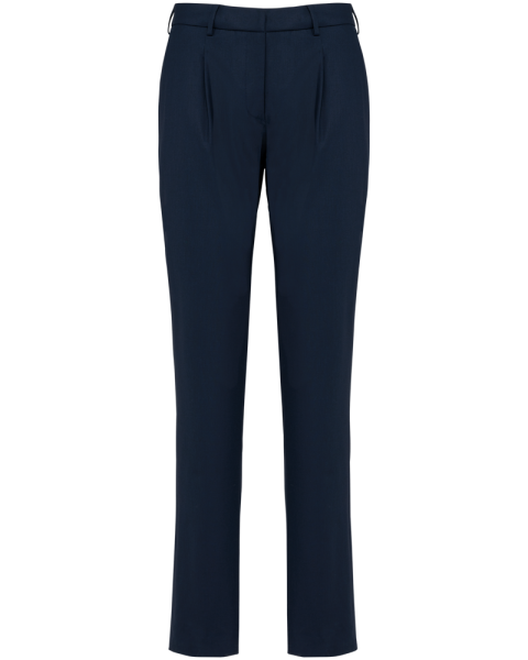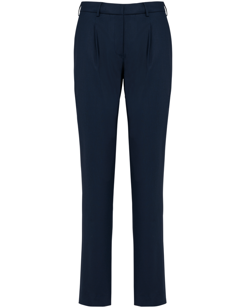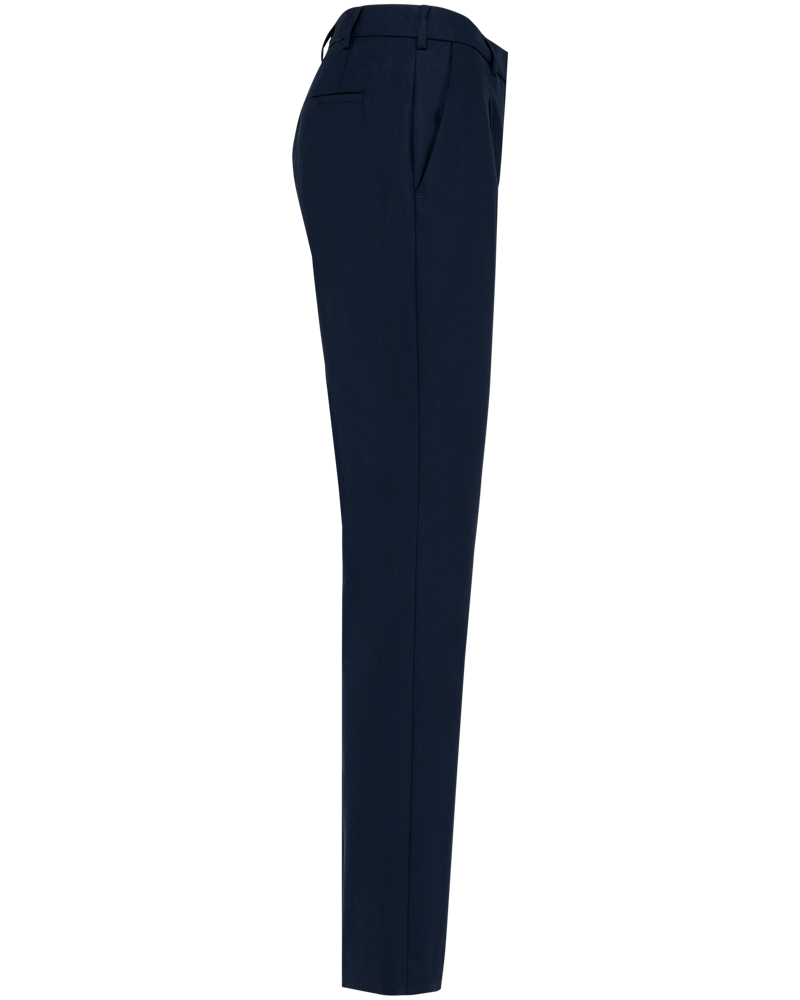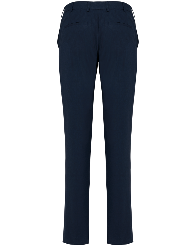 50% poliestere / 23% viscosa / 22% lana / 5% elastan. Fodera tono su tono 100% poliestere. Pantaloni taglio aderente. 2 tasche laterali. 2 tasche posteriori imbottite. Interno tasca in twill poliestere. Zip con clip in metallo e protetta all'interno da una fascia in tessuto (sottoponte) tenuta in posizione da un bottone per un maggiore comfort. Passante per cintura in vita. Sbieco di rinforzo all'interno sulla finitura del girovita. Piega nella parte anteriore della gamba. Nessuna etichetta con il nome del marchio; solo una piccola etichetta con l'indicazione della taglia per semplificare la personalizzazione.