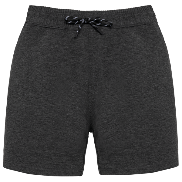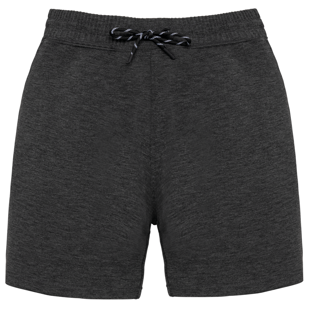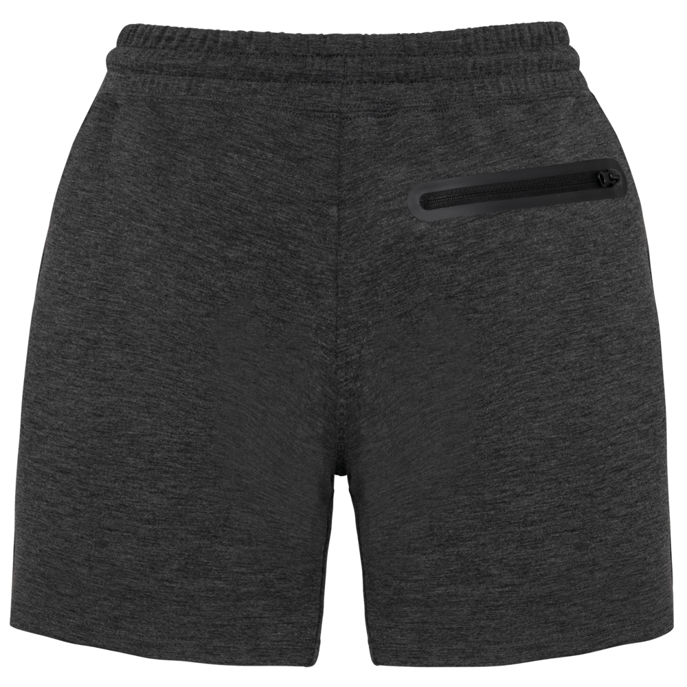 Tinta unita: 94% poliestere/ 6% elastan. Colori screziati: 79% poliestere/ 15% viscosa/ 6% elastan. Tessuto ultra confortevole. Girovita elasticizzato con coulisse bicolore, finitura puntale in plastica e occhielli in metallo. 2 tasche anteriori foderate in jersey e 1 tasca posteriore con zip, finitura termosaldata a contrasto. Finitura delle tasche con una parte elasticizzata a contrasto Black su tutti i colori e Dark grey su Black e Hash Heather. Finitura a doppia impuntura a fondo capo. Etichetta con il nome del marchio staccabile.