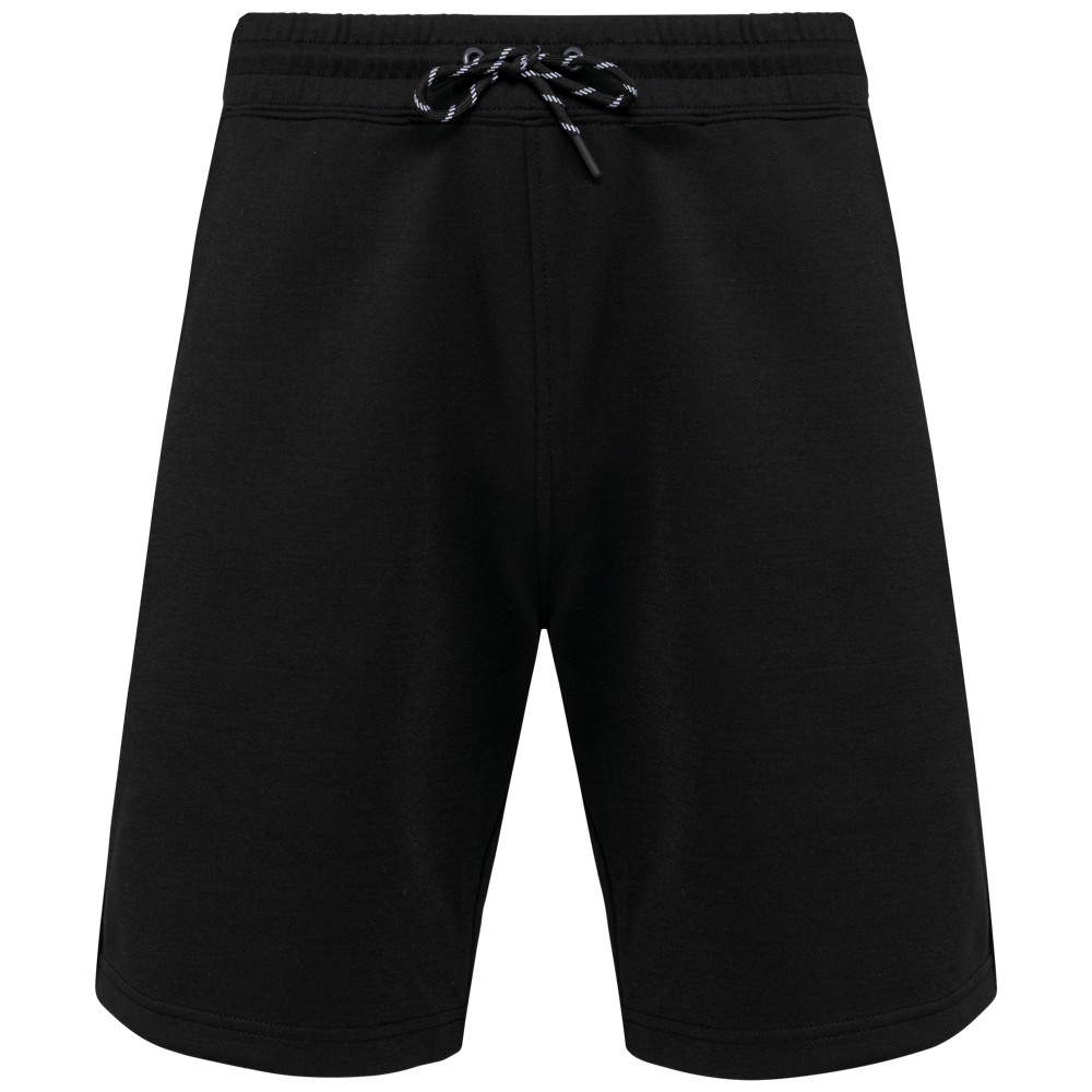 Tinta unita: 94% poliestere/ 6% elastan. Colori screziati: 79% poliestere/ 15% viscosa/ 6% elastan. Tessuto ultra confortevole. Girovita elasticizzato con coulisse bicolore, finitura puntale in plastica e occhielli in metallo. 2 tasche anteriori foderate in jersey e 1 tasca posteriore con zip, finitura termosaldata a contrasto. Finitura delle tasche con una parte elasticizzata a contrasto Black su tutti i colori e Dark grey su Black e Hash Heather. Finitura a doppia impuntura a fondo capo. Etichetta con il nome del marchio staccabile.