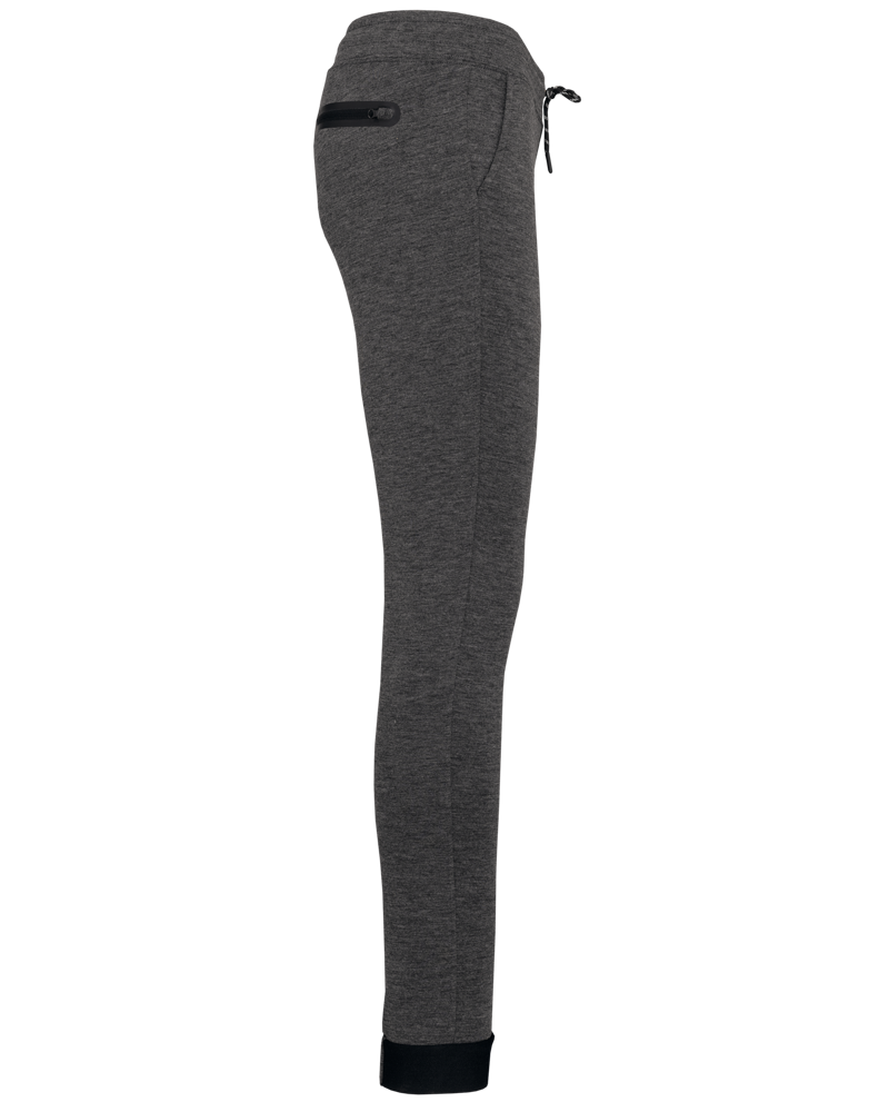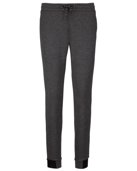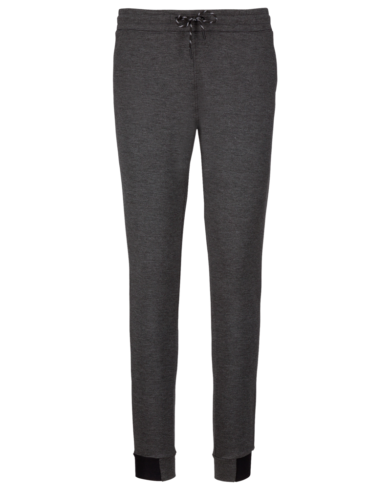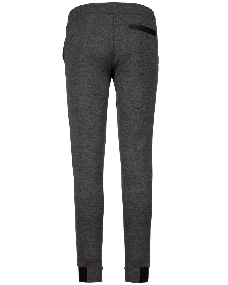 94% poliestere/ 6% elastan (79% poliestere/15% viscosa/ 6% elastan per i colori melange). Materiale ultra comodo. Girovita elastico con coulisse bicolore e finitura puntale in plastica. 2 tasche sul davanti con fodera in jersey 65% poliestere/ 35% viscosa e 1 tasca posteriore con finitura termosaldata. Taglio moderno e aderente con inserti sulle ginocchia. Fondo gamba stretto con una parte elastica a contrasto Black su tutti i colori e Dark Grey sull'erica di Ash Heather.