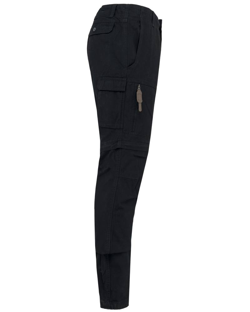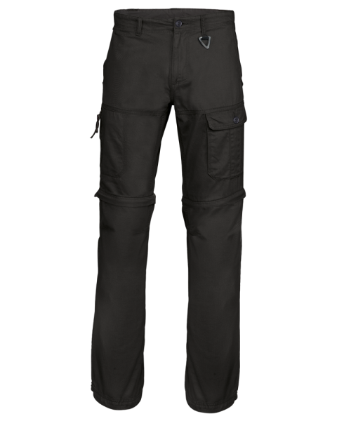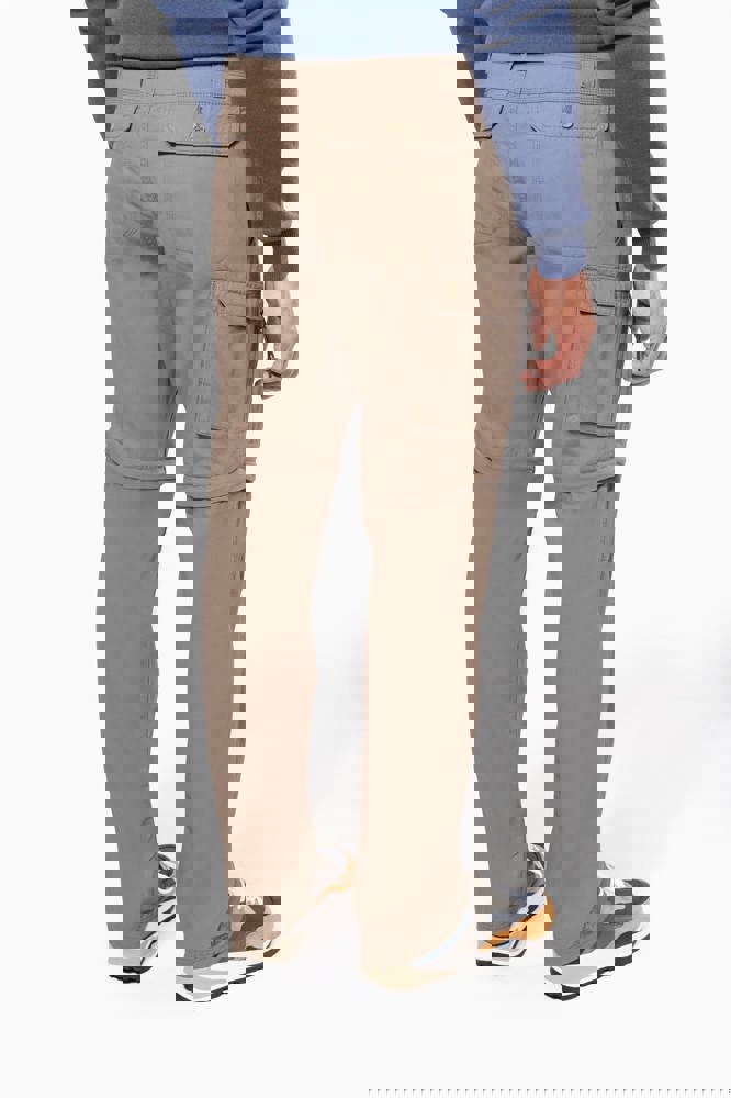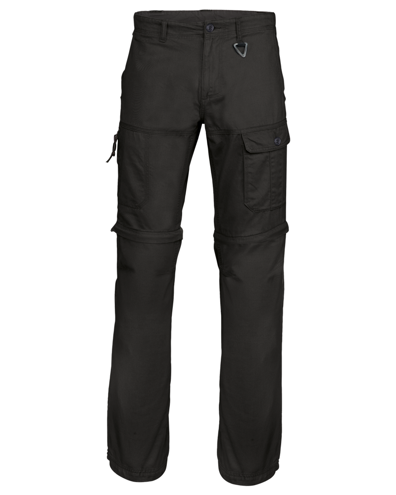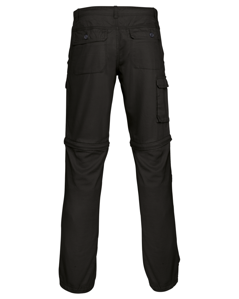 100% Twill di Cotone. Lavaggio agli enzimi. Chiusura con zip. 4 tasche anteriori. 3 tasche posteriori. Zip alle gambe per trasformare i pantaloni in bermuda. Anello di plastica al passante anteriore.