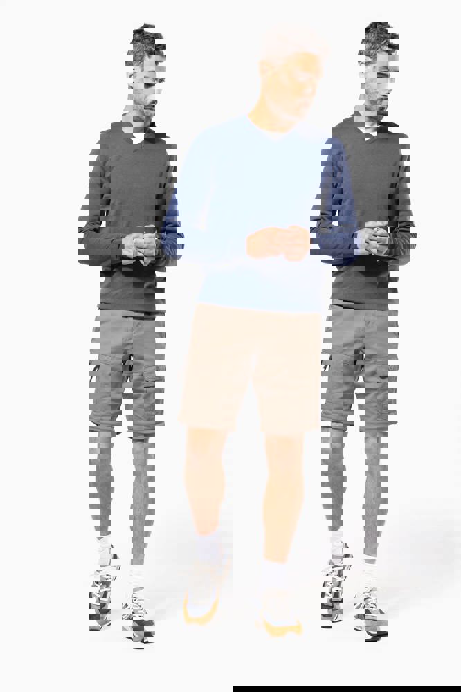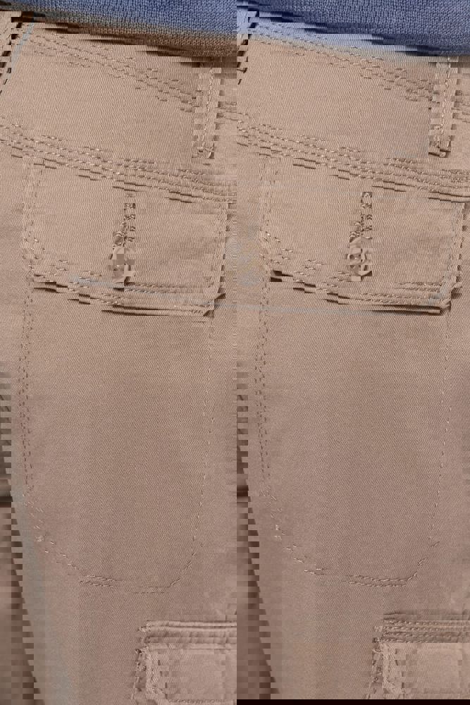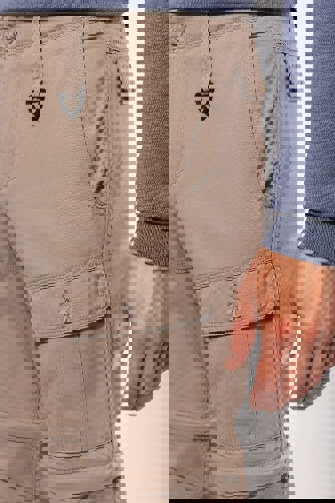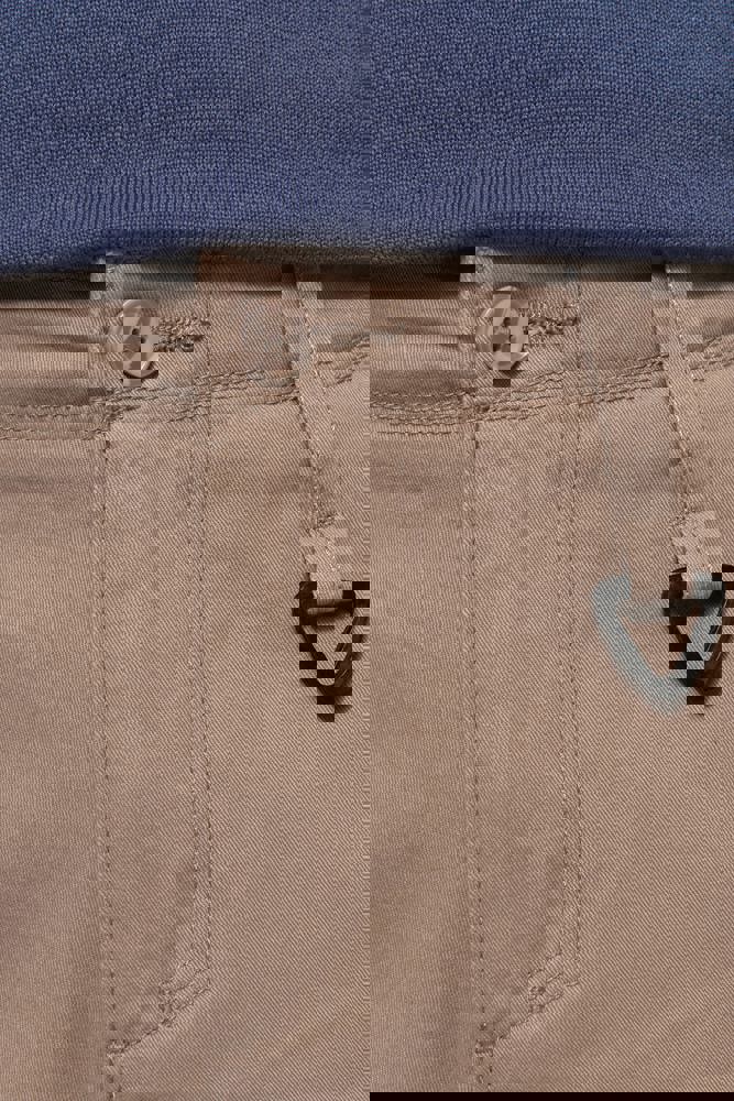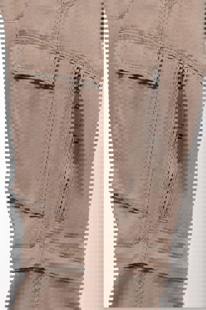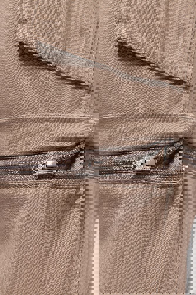 100% Twill di Cotone. Lavaggio agli enzimi. Chiusura con zip. 4 tasche anteriori. 3 tasche posteriori. Zip alle gambe per trasformare i pantaloni in bermuda. Anello di plastica al passante anteriore.