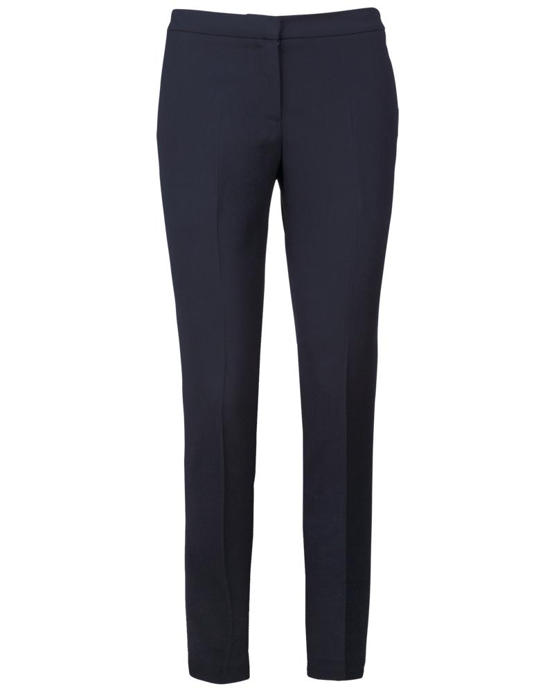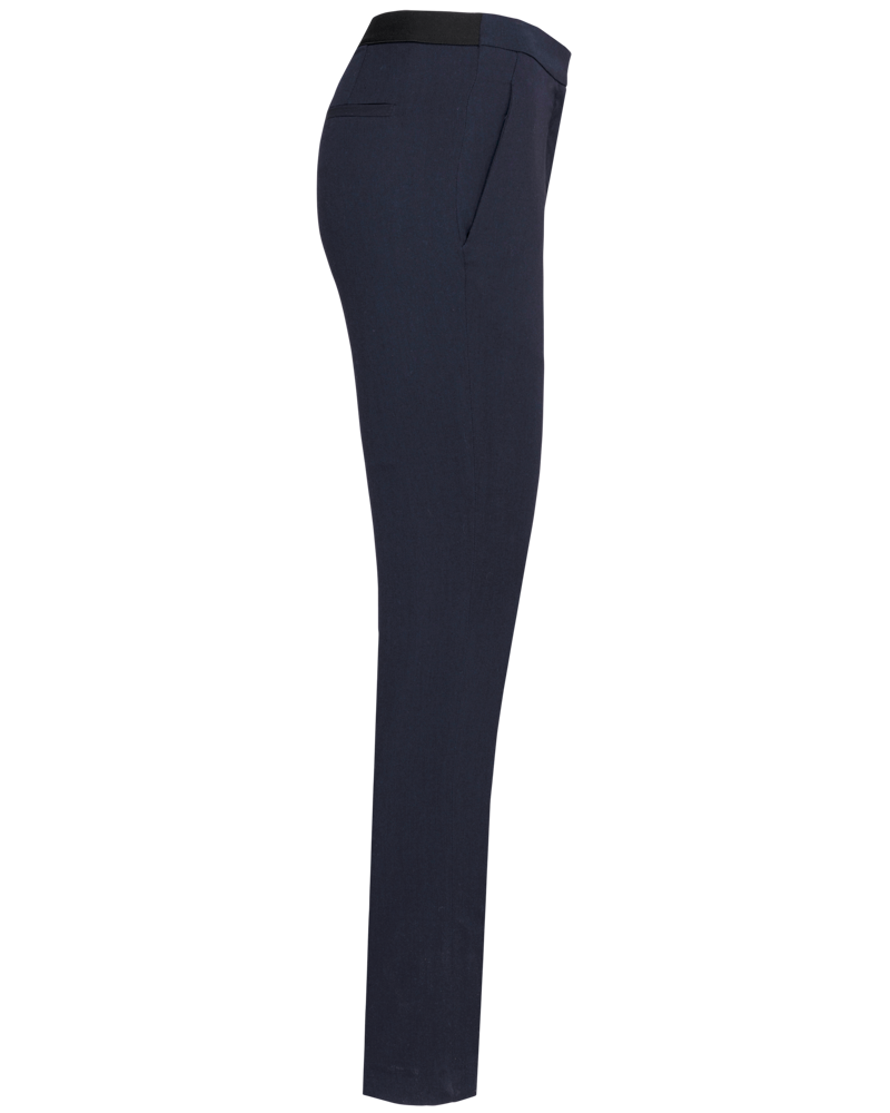 64% poliestere / 34% viscosa / 2% elastan. Pantaloni taglio aderente. 2 tasche all'italiana sul davanti e 2 tasche posteriori a filetto. Chiusura patta con zip e gancio; bottone sotto la pattina. Girovita con bordo elasticizzato sul retro per un comfort ottimale. Lunghezza cavallo : 78 cm. Fondo gamba con orlo invisibile.