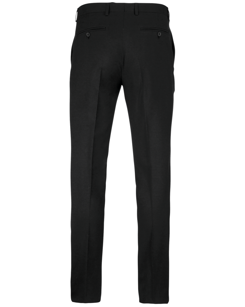 64% poliestere / 34% viscosa / 2% elastan. Pantaloni taglio aderente. 2 tasche all'italiana sul davanti e 2 tasche posteriori a filetto con bottoni. Chiusura patta con zip e gancio; bottone sotto la pattina. Girovita con passanti. 1/2 gamba foderata sul davanti. "Fondo gamba" non finito" che permette di realizzare un orlo su misura.