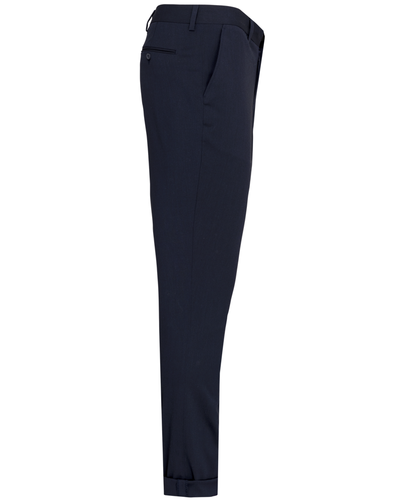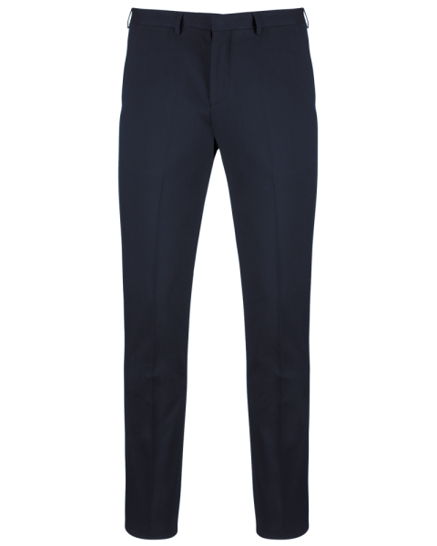 64% poliestere / 34% viscosa / 2% elastan. Pantaloni taglio aderente. 2 tasche all'italiana sul davanti e 2 tasche posteriori a filetto con bottoni. Chiusura patta con zip e gancio; bottone sotto la pattina. Girovita con passanti. 1/2 gamba foderata sul davanti. "Fondo gamba" non finito" che permette di realizzare un orlo su misura.
