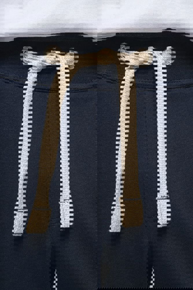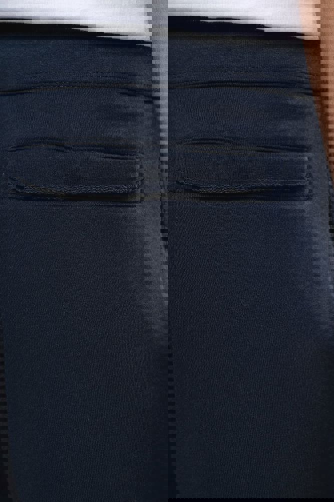 80% cotone / 20% poliestere. Cotone pettinato. Tessuto non garzato a basso restringimento (French Terry). Girovita alta con coulisse. 2 tasche anteriori. 1 tasca posteriore con bordi grezzi. Finitura a doppio ago.