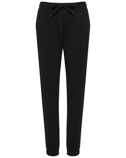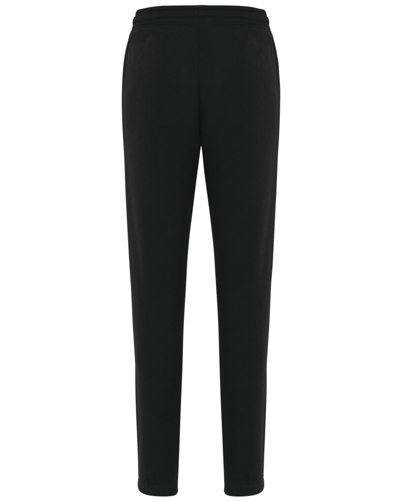 85% cotone biologico / 15% poliestere riciclato post-consumer. Tessuto felpato 3 fili LSF (Low Shrinkage Fleece). Lavaggio agli enzimi. Taglio dritto. 2 tasche laterali all'Italiana. Girovita elasticizzato con coulisse piatta. Fondo gamba elasticizzato. Nessuna etichetta con il nome del marchio ; solo una piccola etichetta con l'indicazione della taglia per semplificare la personalizzazione.