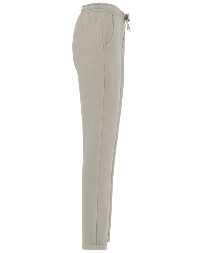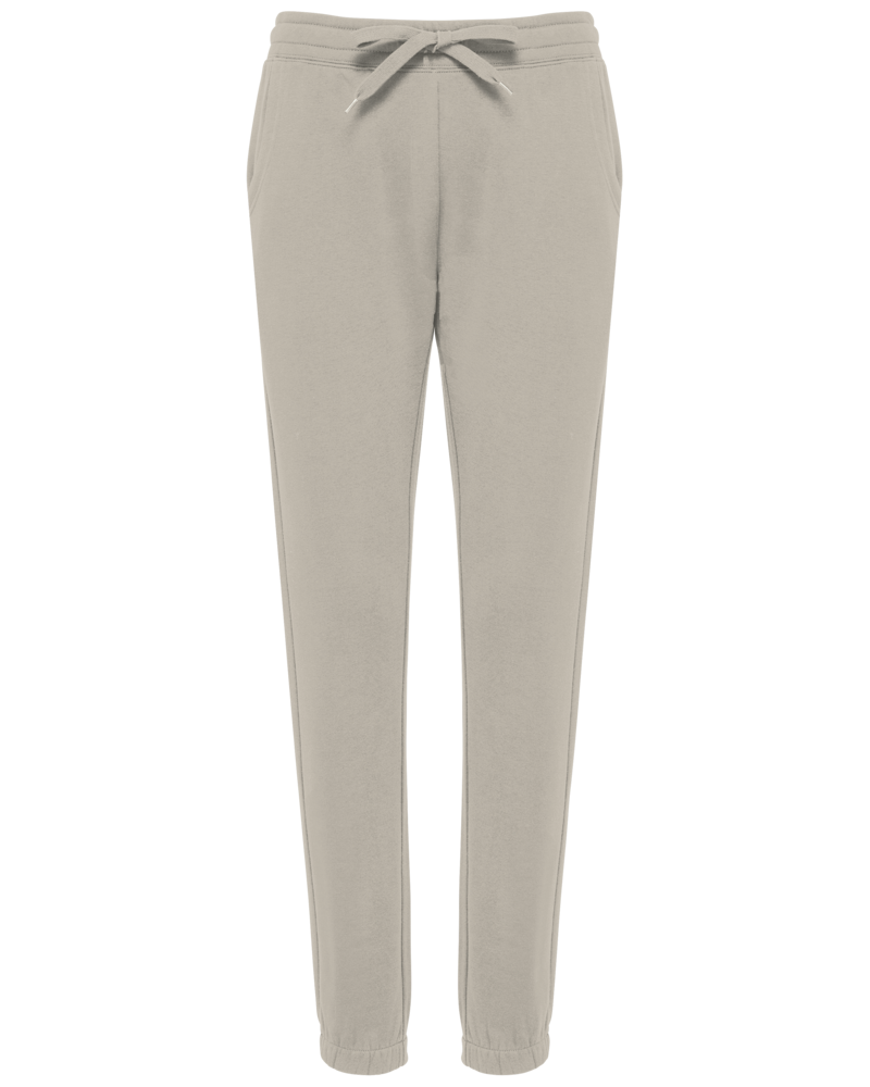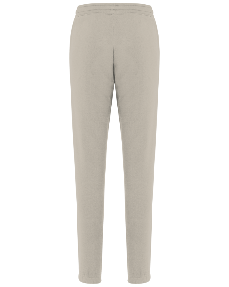 85% cotone biologico / 15% poliestere riciclato post-consumer. Tessuto felpato 3 fili LSF (Low Shrinkage Fleece). Lavaggio agli enzimi. Taglio dritto. 2 tasche laterali all'Italiana. Girovita elasticizzato con coulisse piatta. Fondo gamba elasticizzato. Nessuna etichetta con il nome del marchio ; solo una piccola etichetta con l'indicazione della taglia per semplificare la personalizzazione.