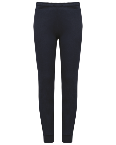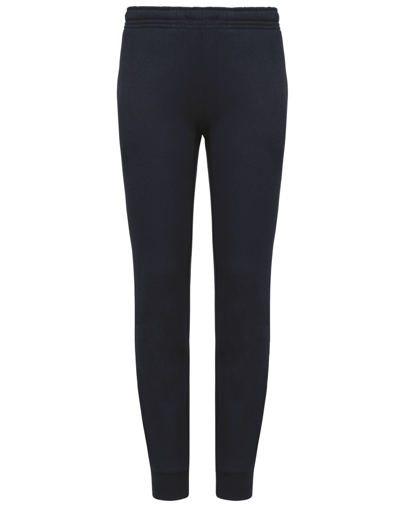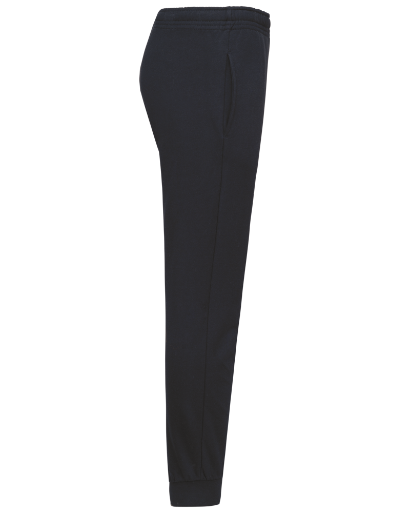 80% cotone / 20% poliestere. Felpa garzata a 2 fili. Taglio dritto. 2 tasche laterali. Girovita elasticizzato con coulisse piatta. Fondo gamba con bordo a costine.