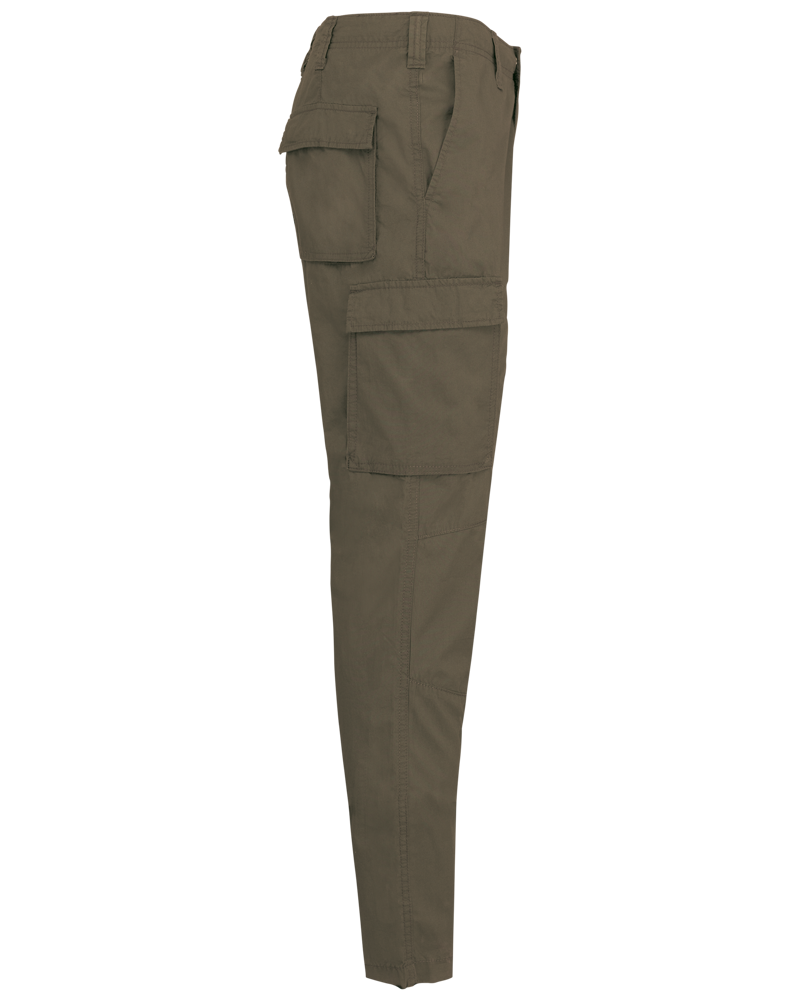 100% cotone popeline. Tessuto lavato per un effetto morbido e confortevole. Coulisse interna in vita. Chiusura con zip e automatico. 2 tasche laterali all'italiana + 1 taschino portamonete. 2 tasche laterali e posteriori applicate, a soffietto, con patta e automatico. Inserti sulle ginocchia.