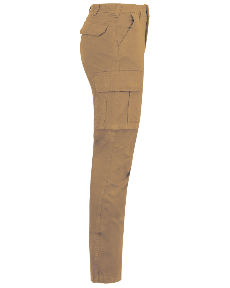98% cotone / 2% elastan. Tessuto pettinato finitura manopesca. Zip e bottone in metallo nascosto. 2 tasche davanti. 2 tasche laterali a soffietto con patta. 2 tasche posteriori con patta.