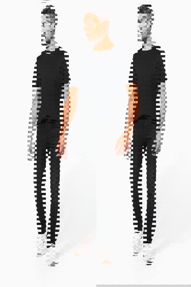 74% cotone / 25% poliestere / 1% elastan. 13 oz. Chiusura con zip e bottone in metallo tono su tono. 2 tasche sul davanti e 1 taschino. 2 tasche posteriori applicate. Cuciture tono su tono. Effetto sbiaditure leggere. Girovita con passanti. Taglio dritto. I jeans sono stati sottoposti a un trattamento speciale che conferisce un aspetto volutamente invecchiato. Con il lavaggio, si formerà una patina. Tale metodo di fabbricazione comporta variazioni di colore da un prodotto all'altro, rendendo ogni pezzo unico e irripetibile.