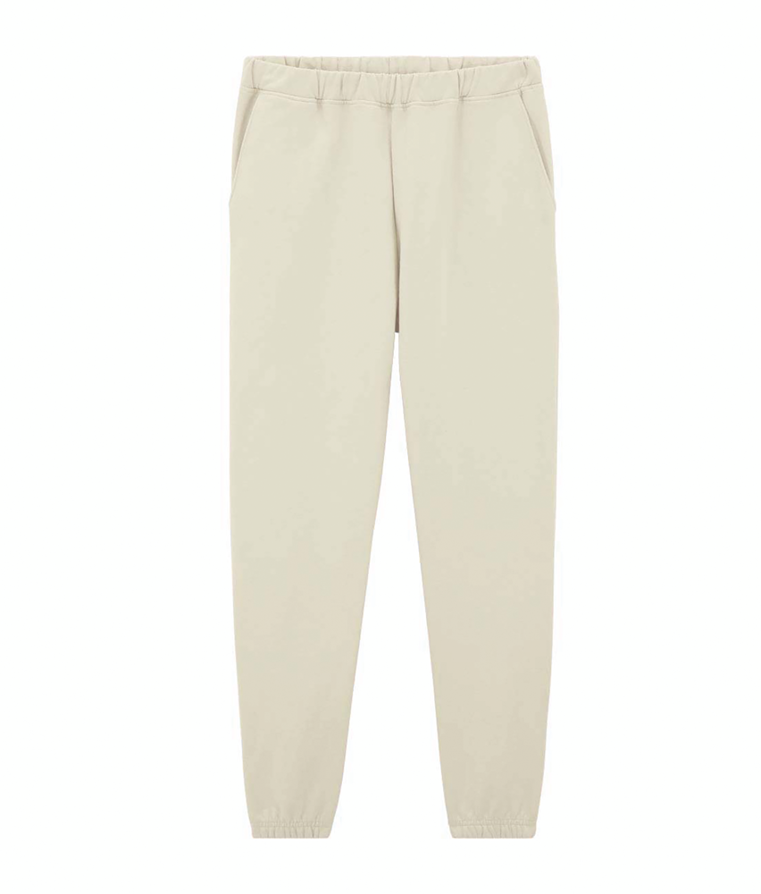 80% cotone Ring Spun / 20% poliestere. Girovita elasticizzato rivestito con cordini piatti interni in tinta. Tasche laterali inclinate. Taglio classico, con gambe affusolate e polsini elasticizzati.
