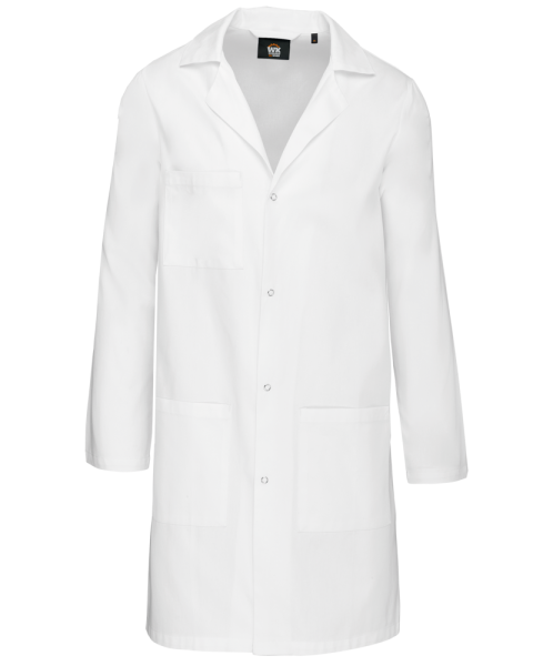 100% cotone. Tessuto pettinato. Lavabile a 60°C. Collo aperto. Chiusura con 4 automatici sul davanti. 2 tasche applicate aperte sul davanti + 1 taschino aperto sul petto, lato destro. Asola per appendere il capo cucita all'interno del collo.
