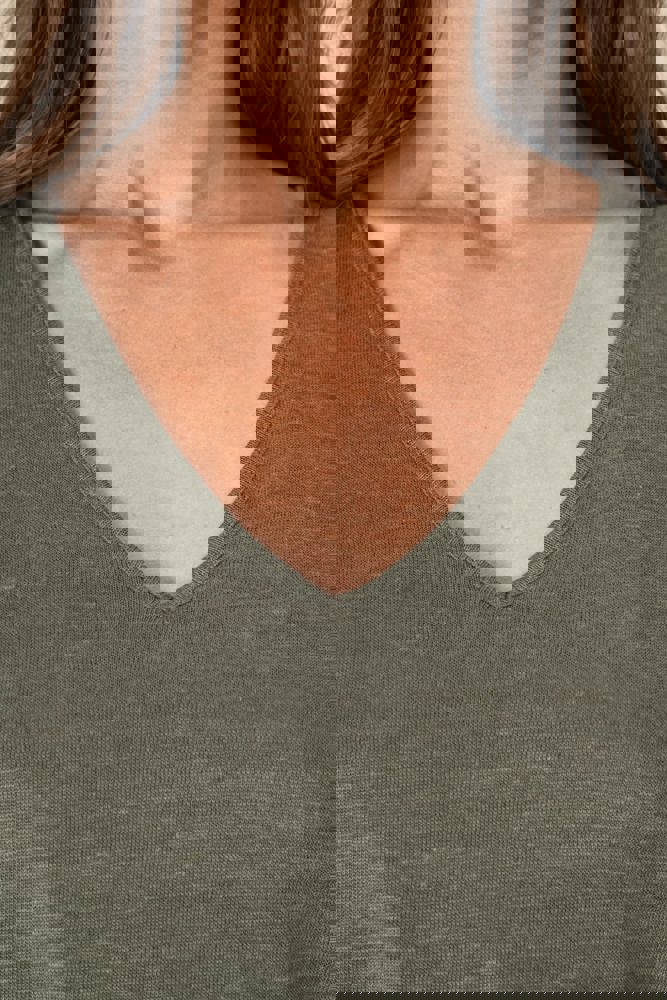 100% lino. Maglia. Taglio comfort con spalle cascanti. Scollo a V davanti e dietro. Cucitura a... more