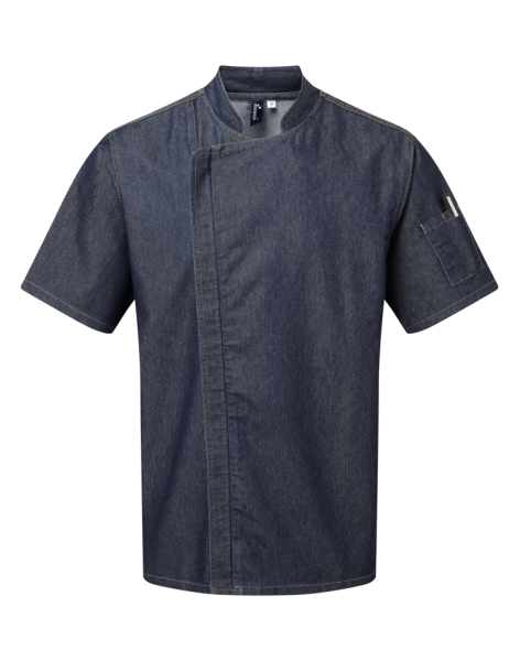60% cotone / 40% twill di poliestere. Facile da infilare grazie alla chiusura con zip nascosta. Inserti di aerazione in colore a contrasto sotto le braccia. Collo alla coreana. Doppia tasca per penna sulla manica sinistra. Lavaggio domestico a 60 °C.