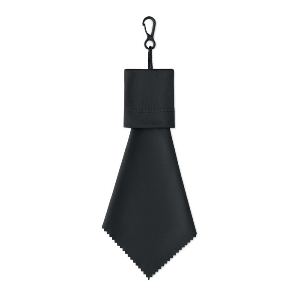 RPET cleaning cloth with self material pouch with PP plastic hanging hook.