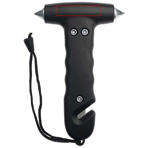 Martelletto d'emergenza con cinturino da polso e tagliacintura integrato nel manico. Con due punte rompivetro in acciaio temprato e il tagliacintura, è un utensile indispensabile in caso di incidenti.